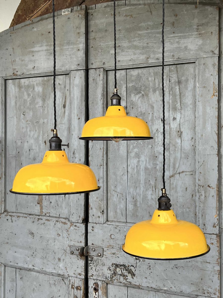 lampe abat jour emaillee industrielle jaune
