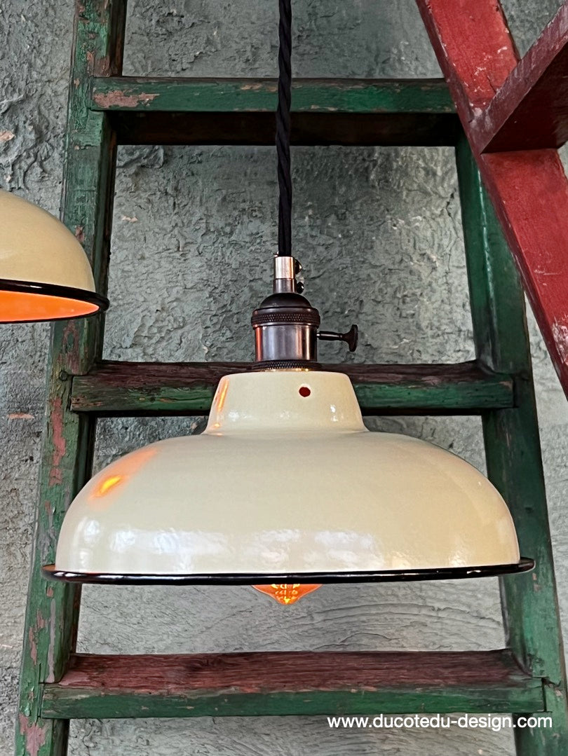 lampe industrielle creme abat jour bateau emaillee