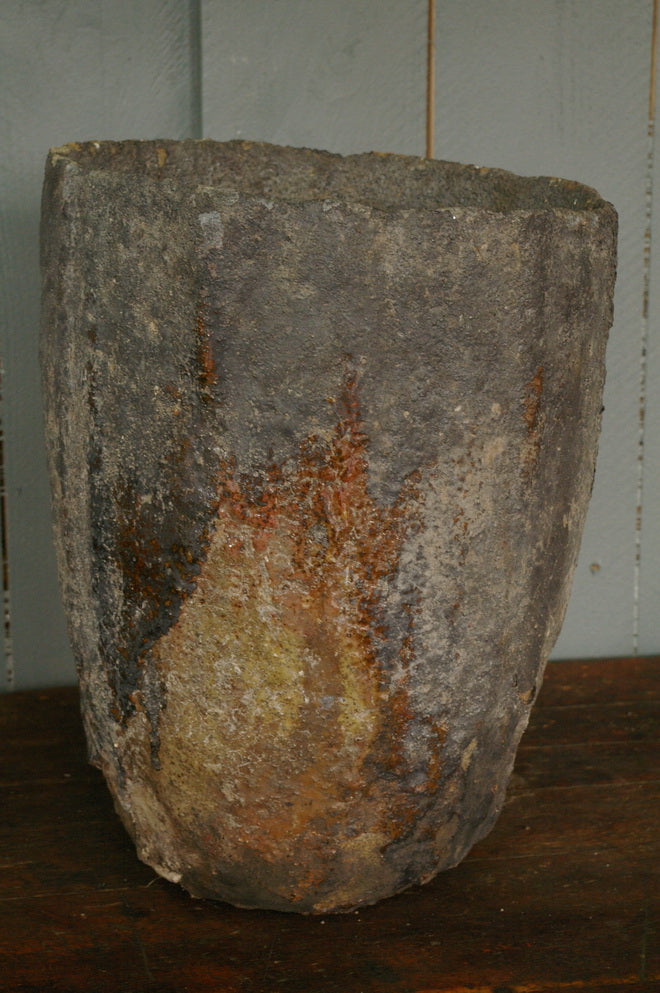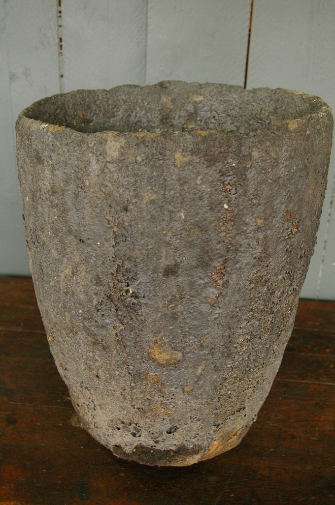 Ancien grand creuset de fonderie industrielle, ideal cache pot