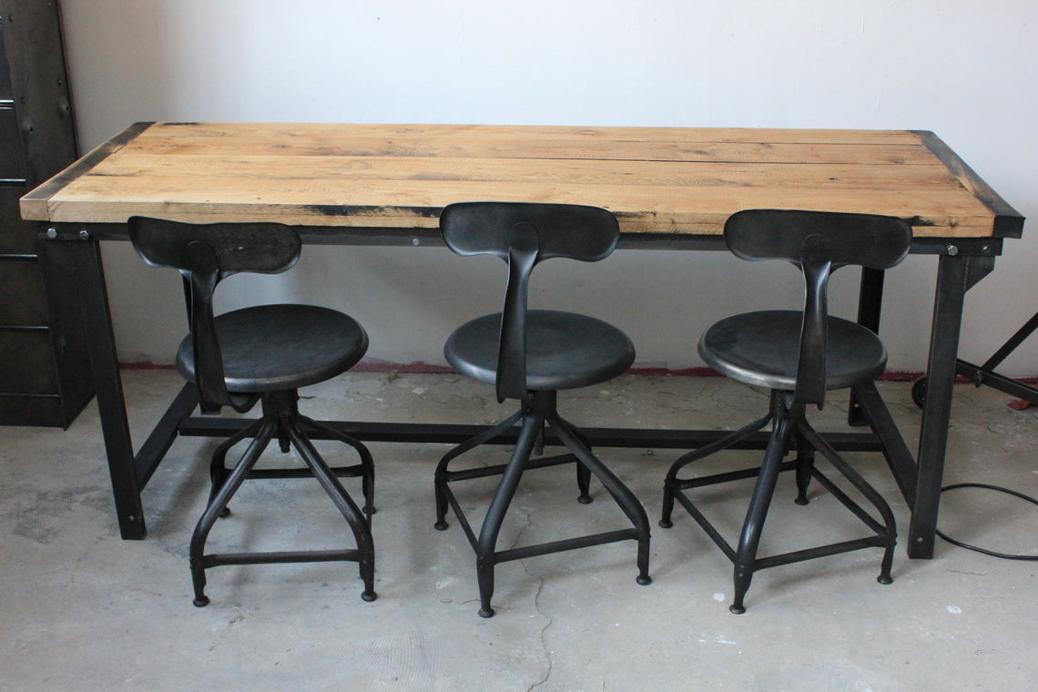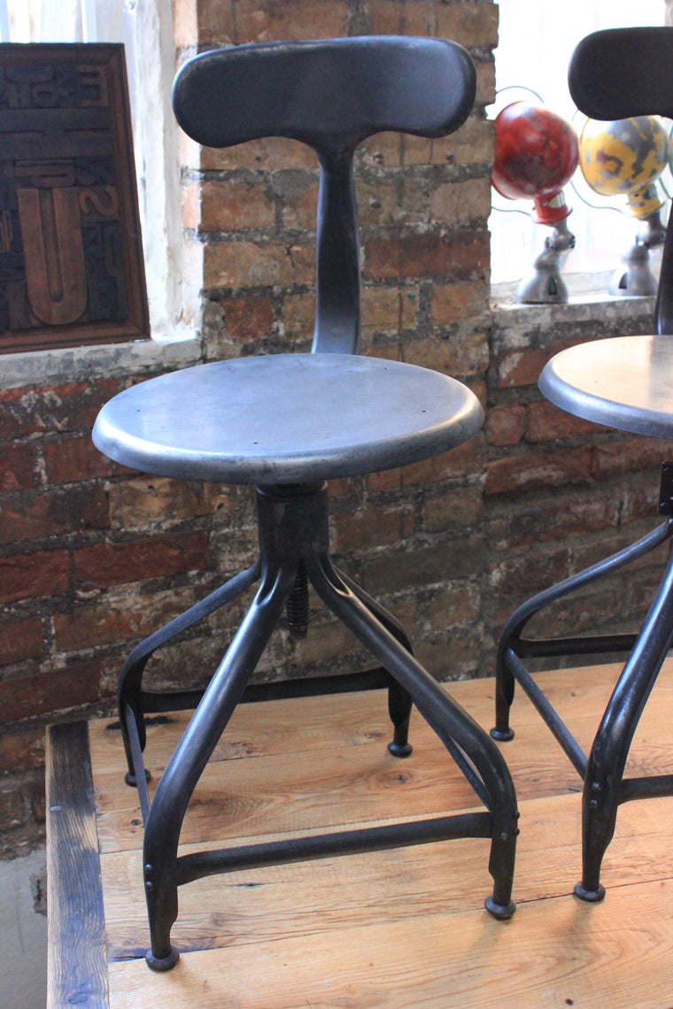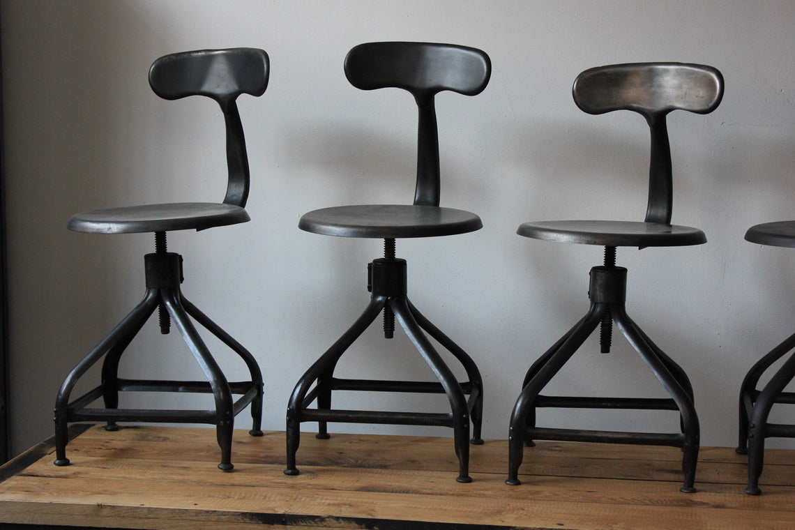 Chaises d'atelier queue de baleine en metal entierement restaurées