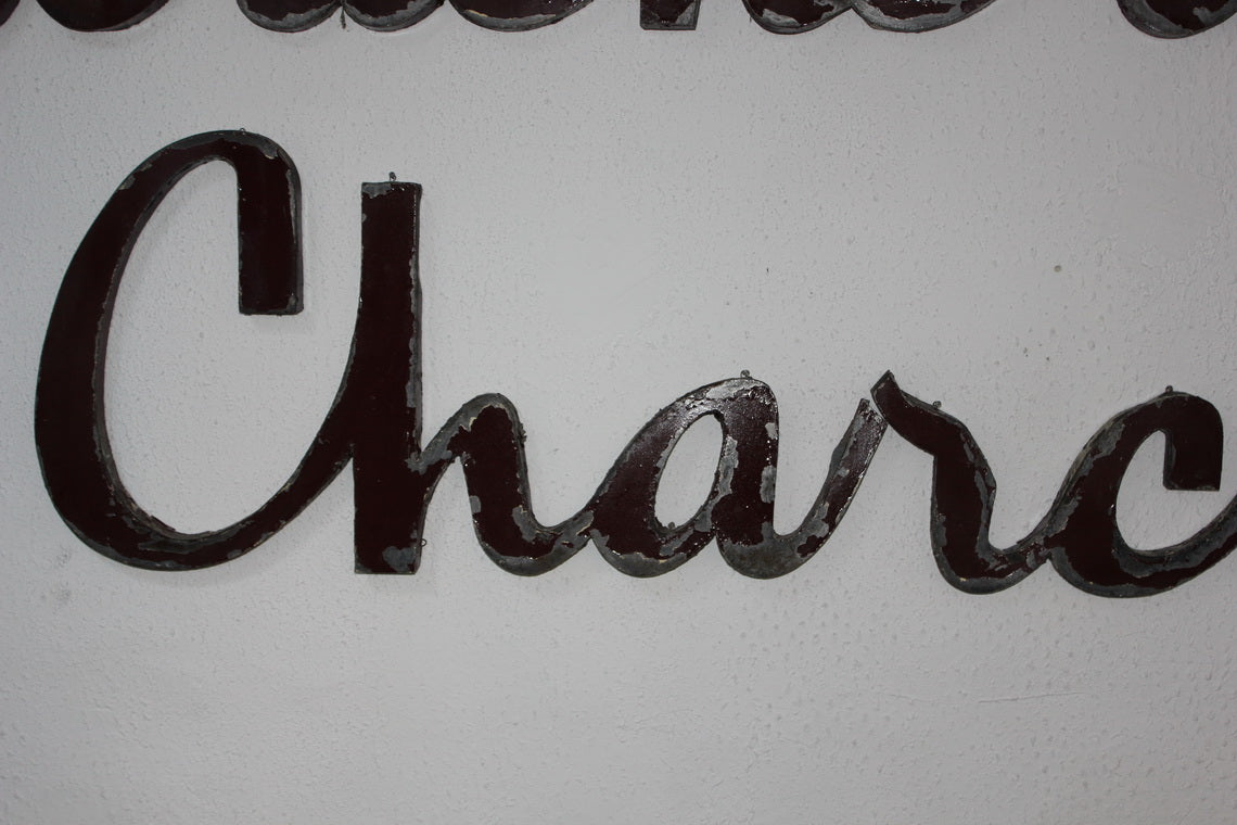 Ancienne grande enseigne charcuterie en zinc superbe patine