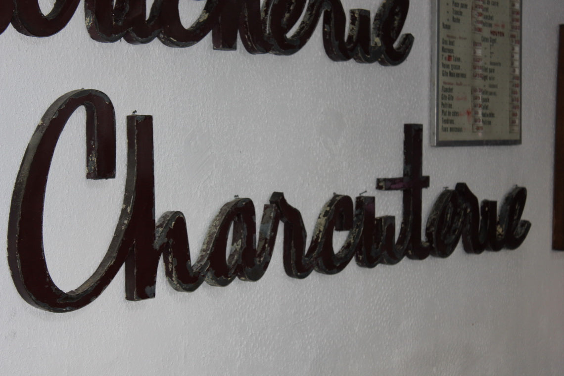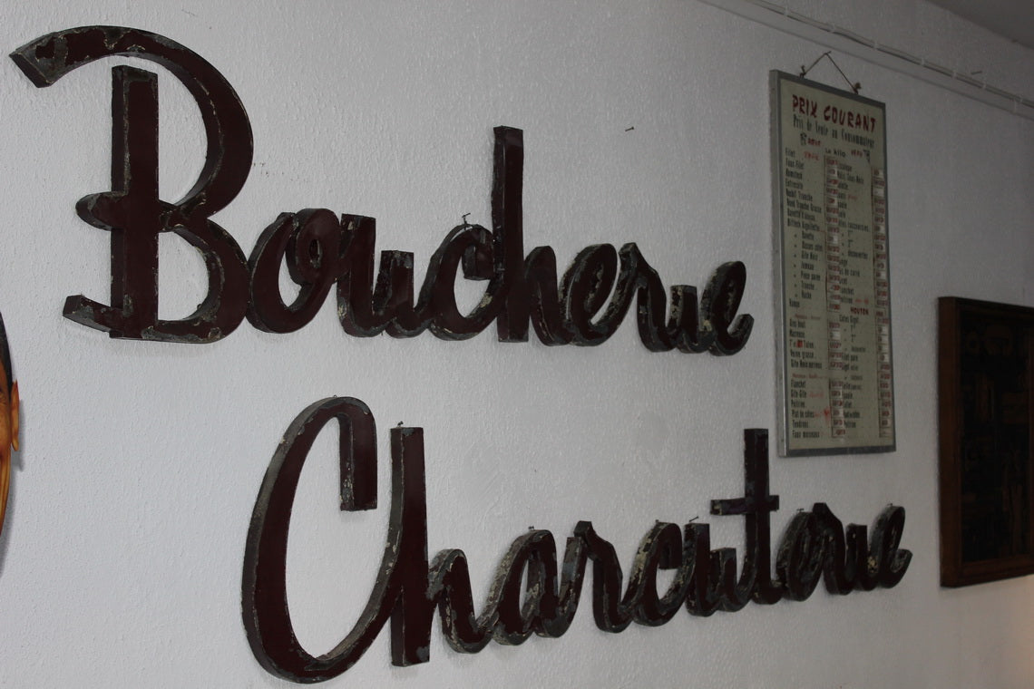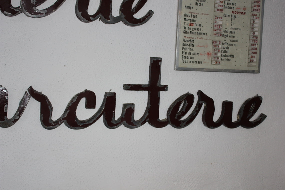 Ancienne enseigne en métal d'une boucherie charcuterie