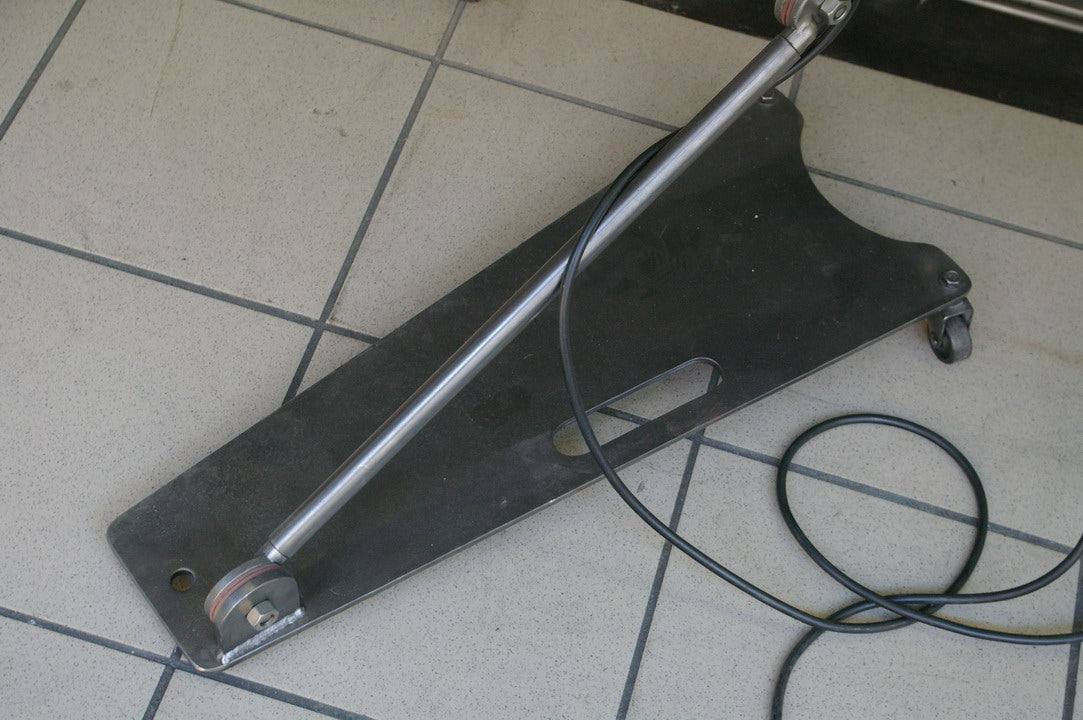 socle lourd à roulettes, 3 bras articulés permetants une hauteur de 1,80 m.
