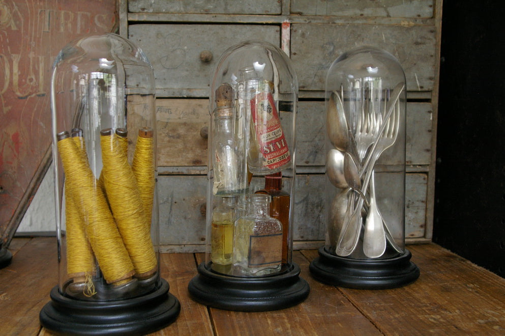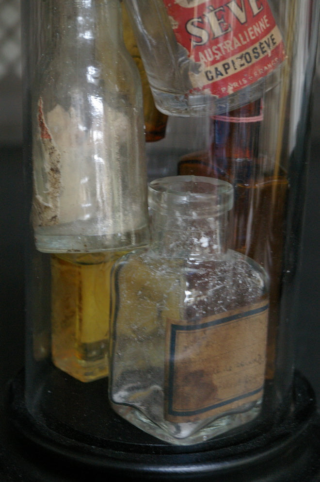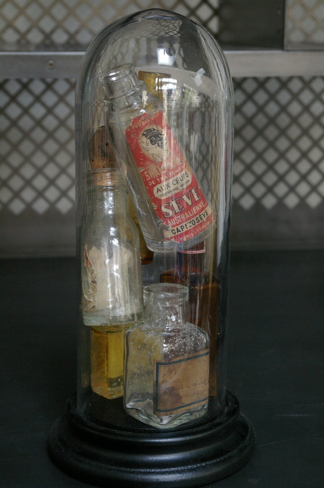 ( produits anciens sous globe soufflé de fabrication plus recente )
