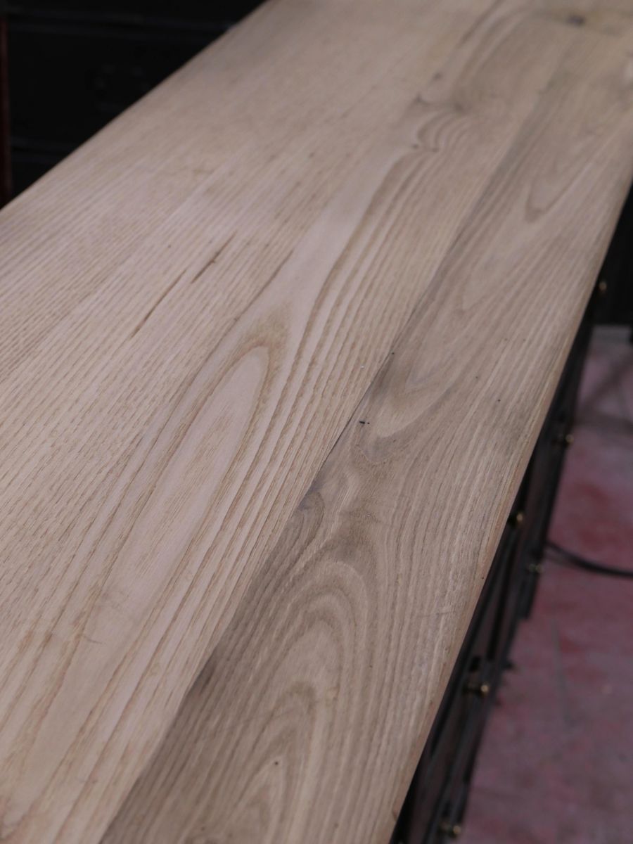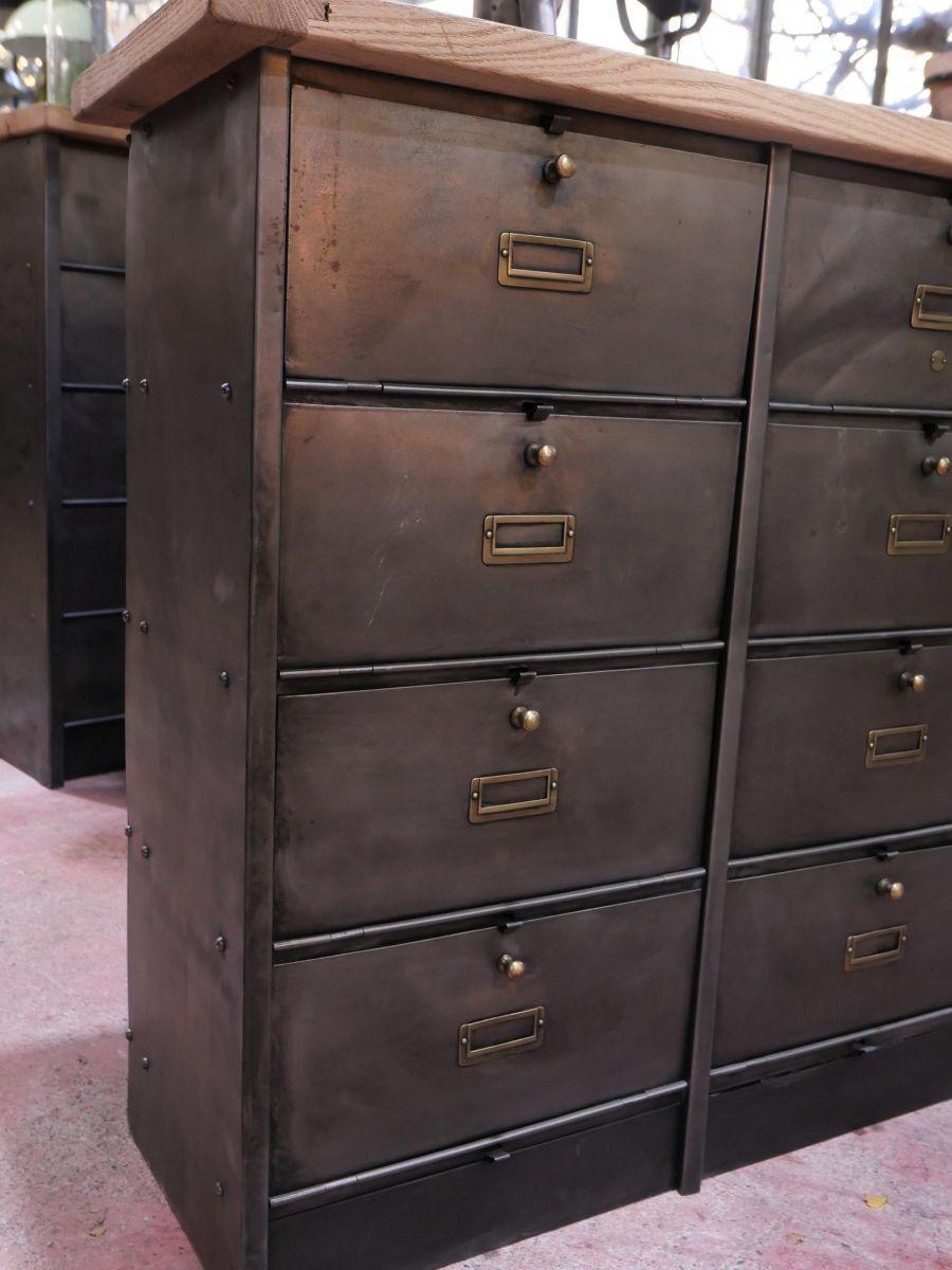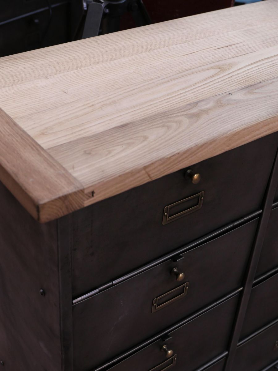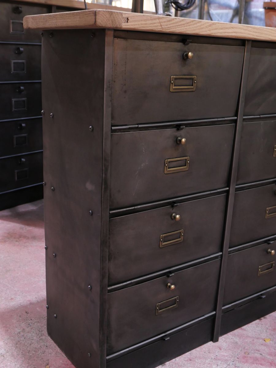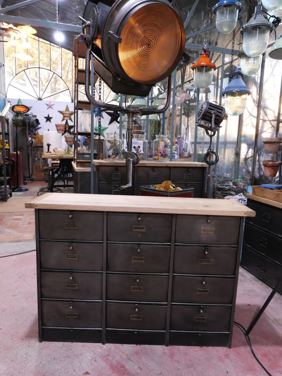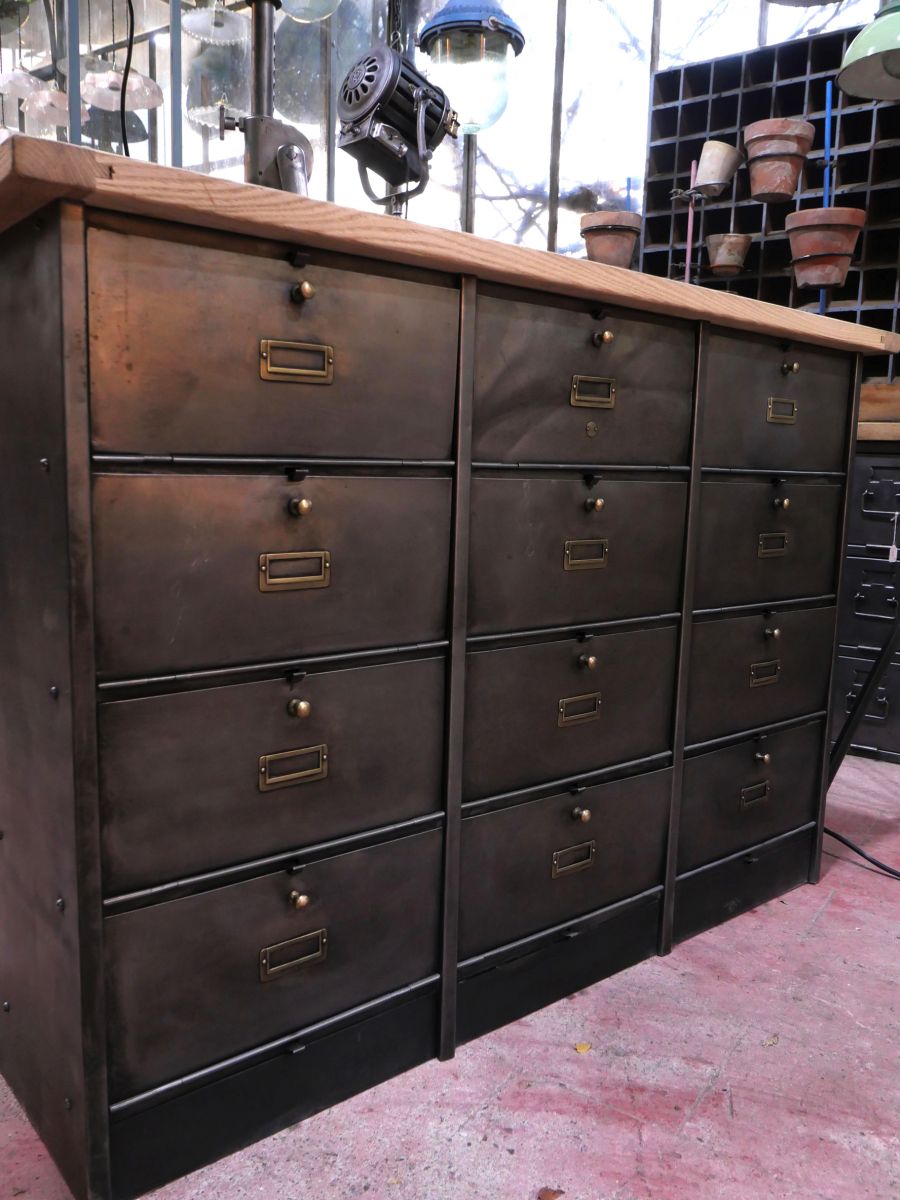 meuble console 12 casiers industriel clapet Roneo plateau chene massif