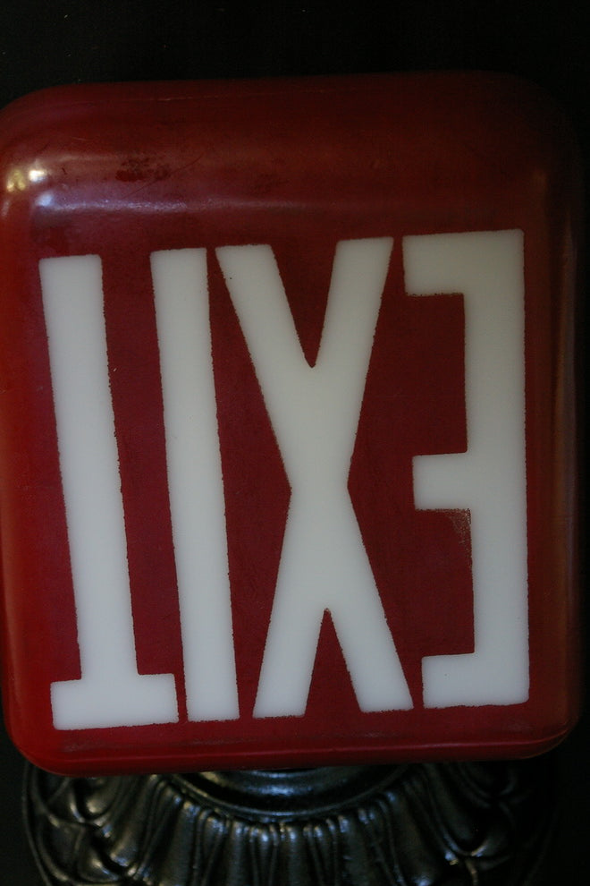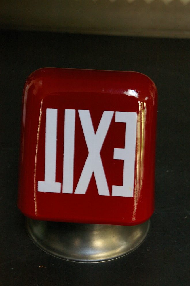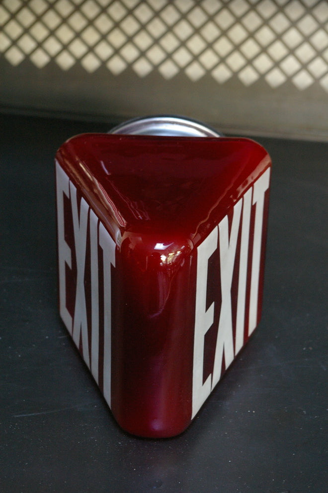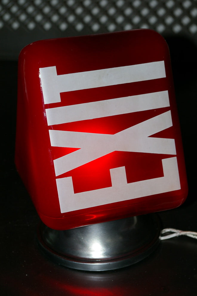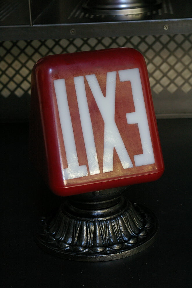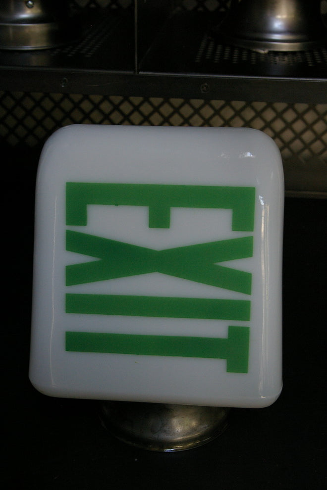 Exit Lampe opaline blanche ecriture verte socle metal