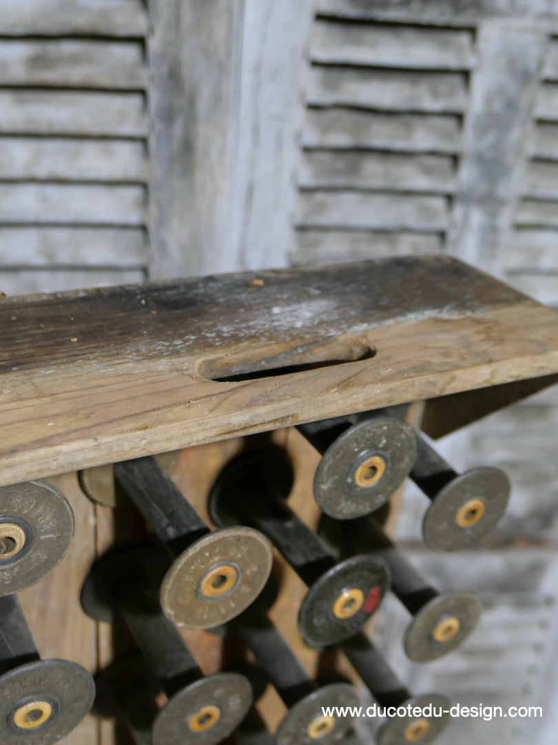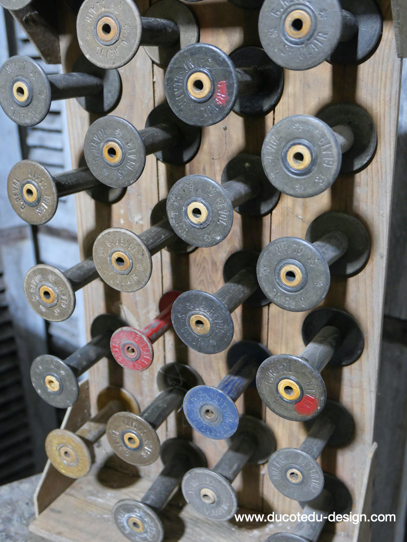 Casier porte bobine en bois et metal