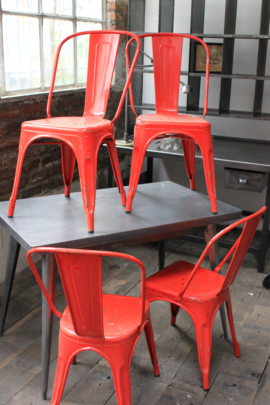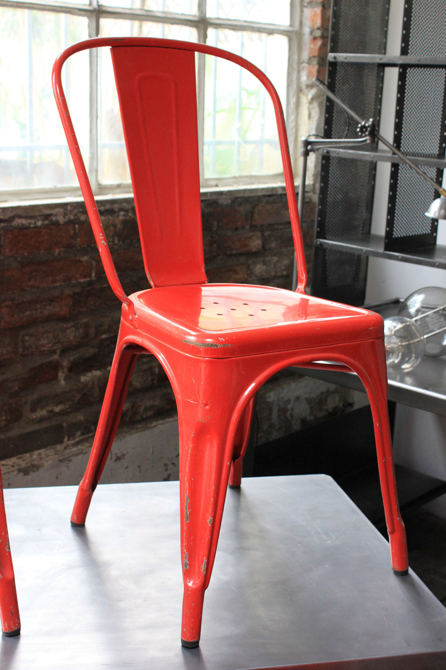 4 ancienne Chaise TOLIX Xavier Pauchard rouge des annees 50