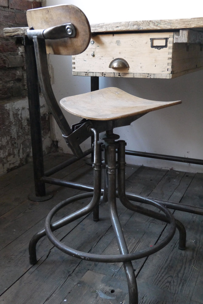ancien tabouret d atelier industrielle nicolle metal dans sont jus