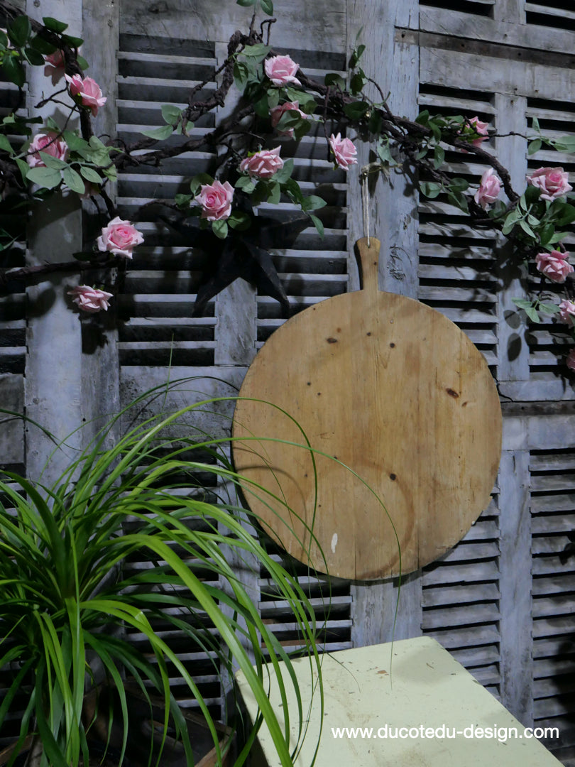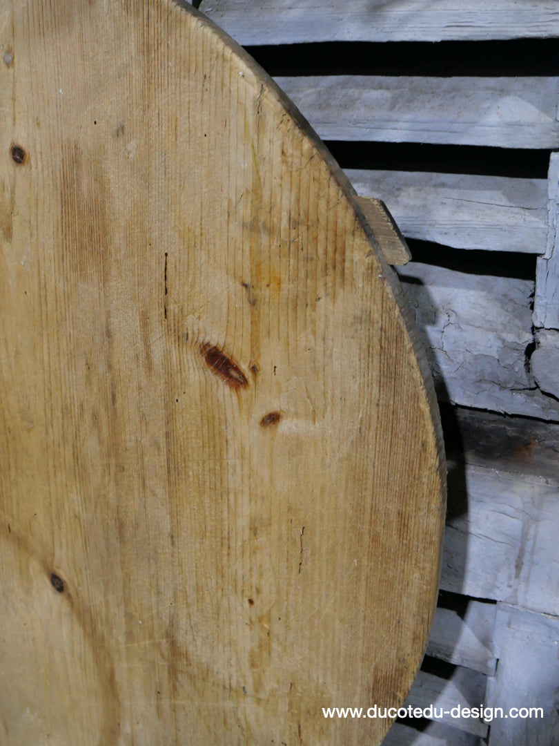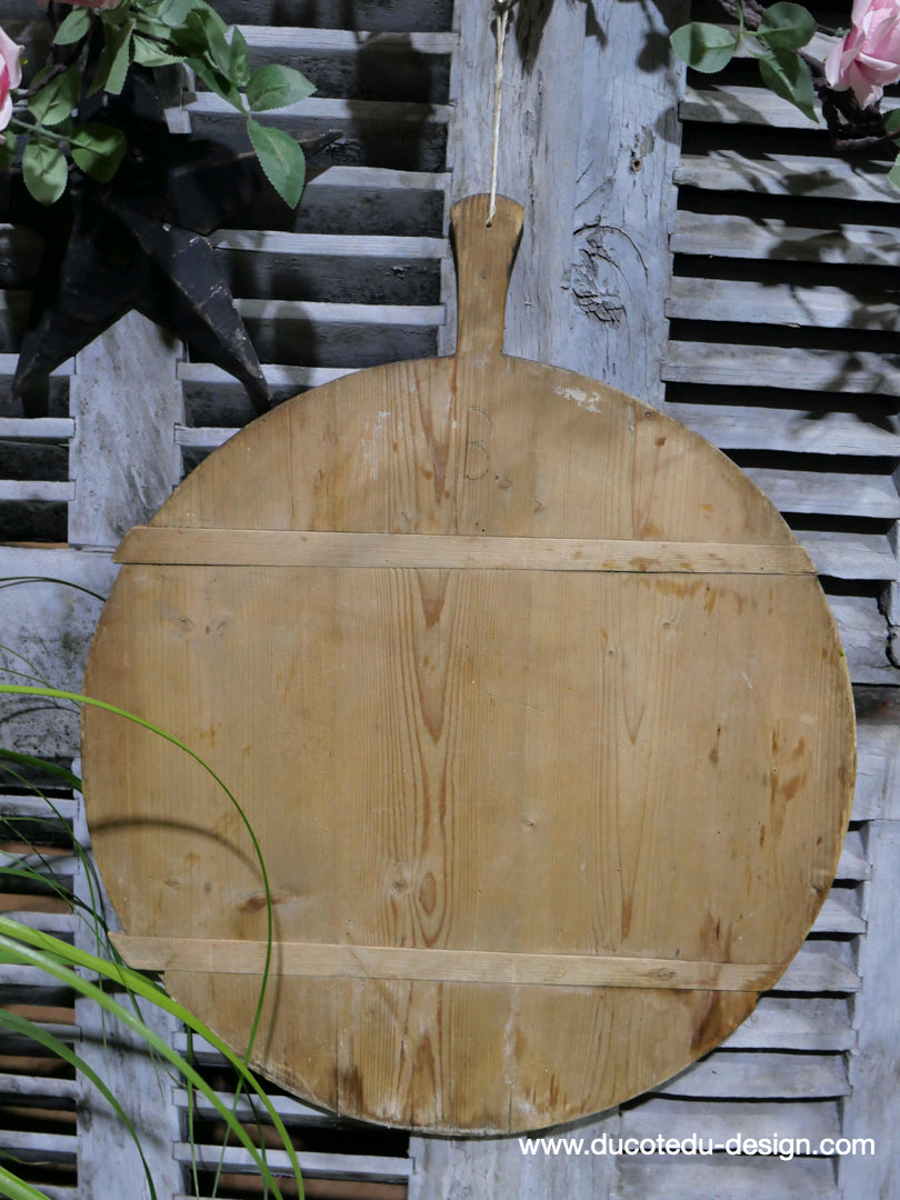 ancienne planche a decouper ronde en bois