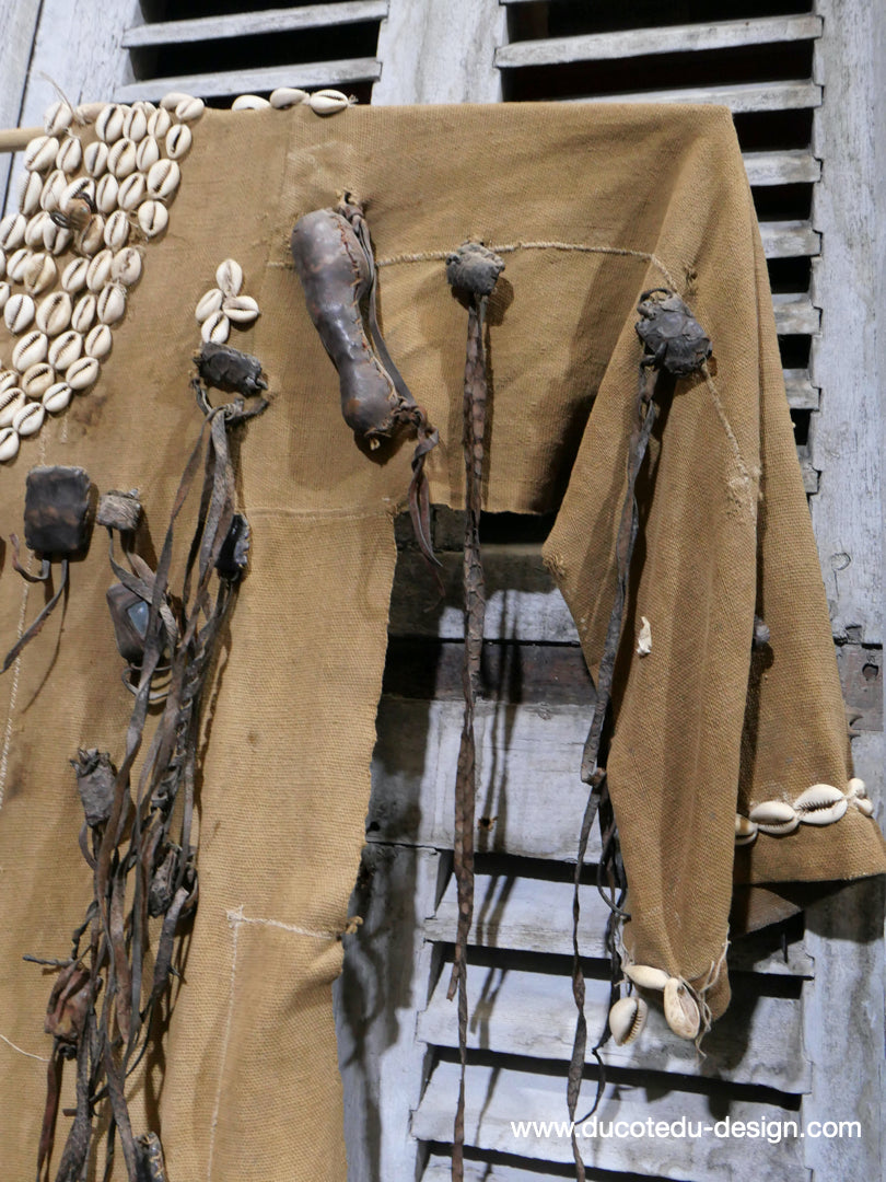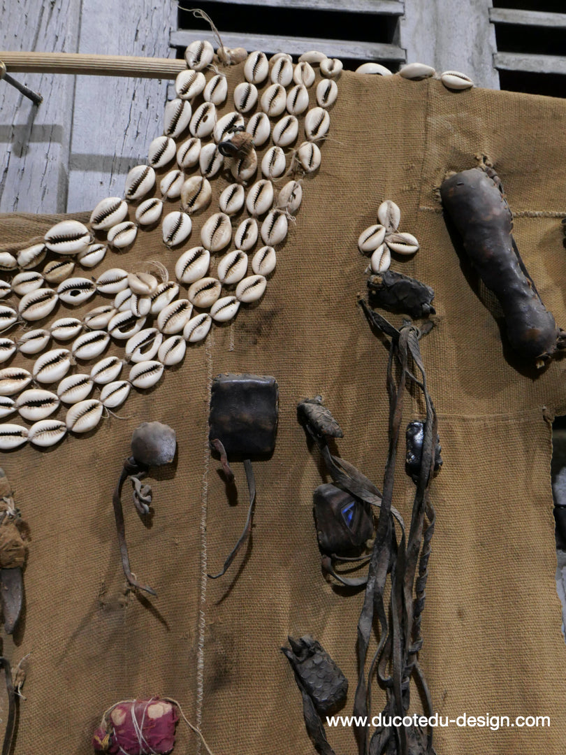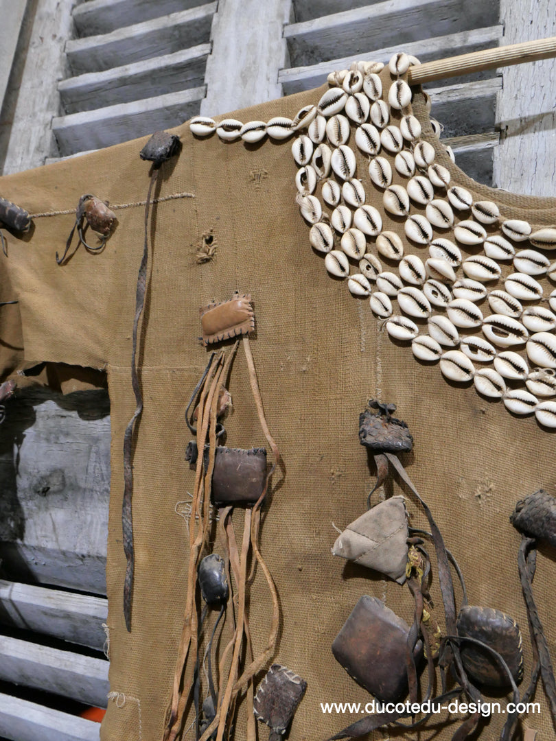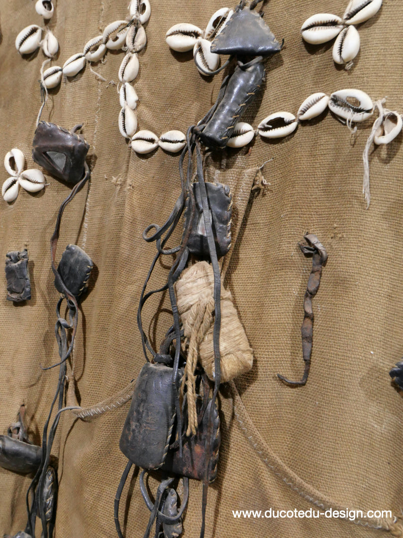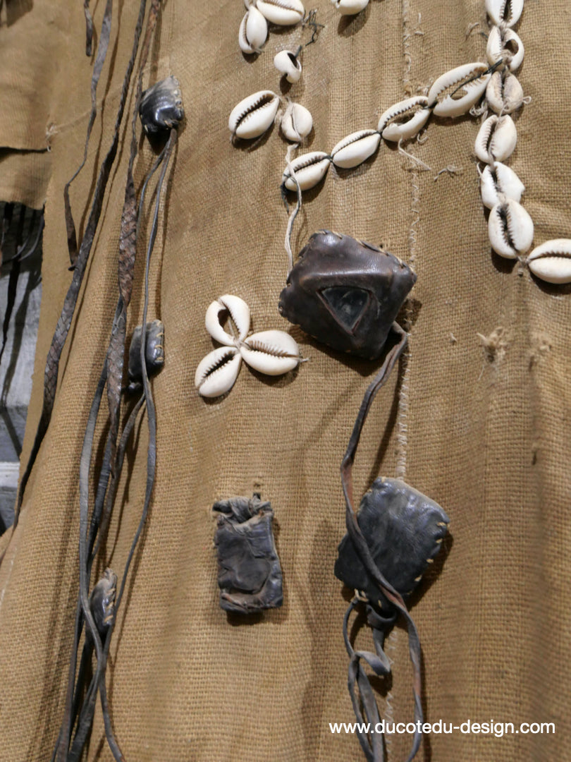 costume de chasse d'Afrique portant des reliques et des talismans