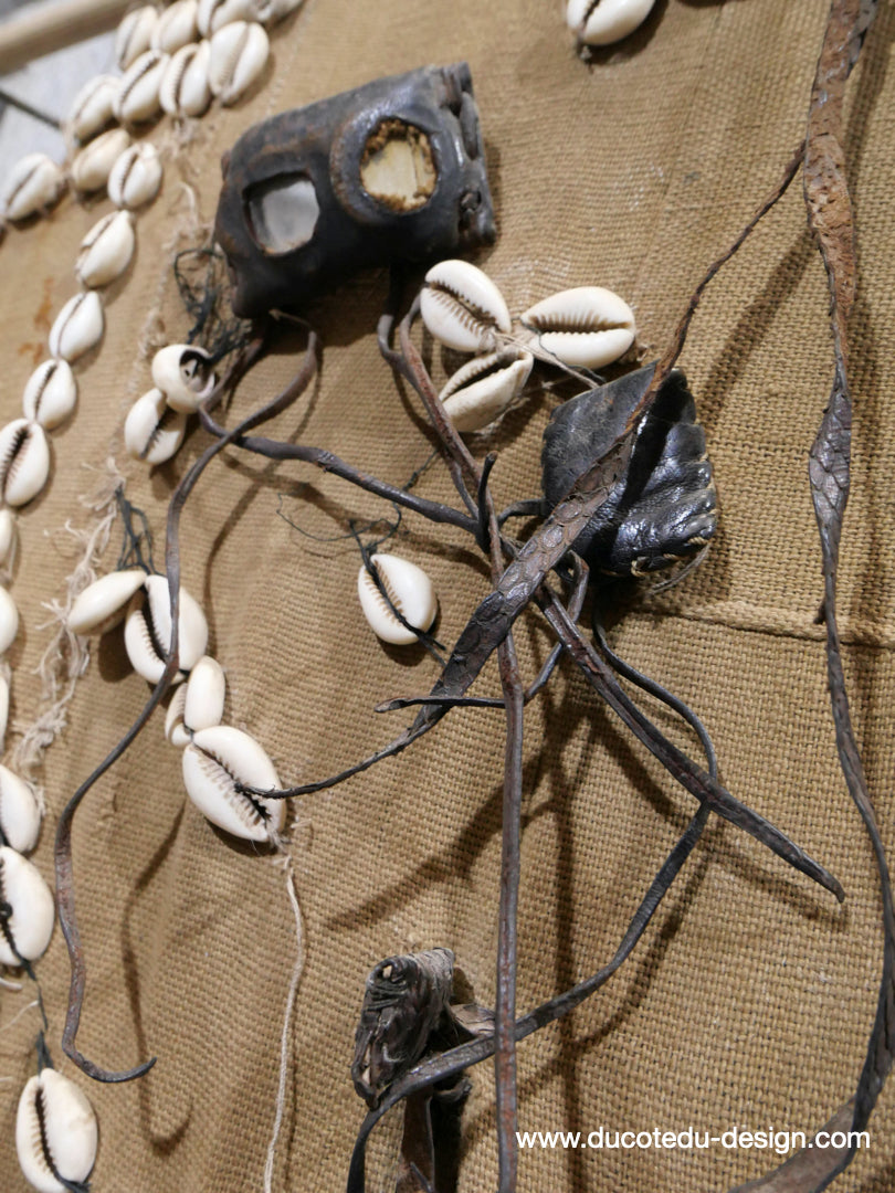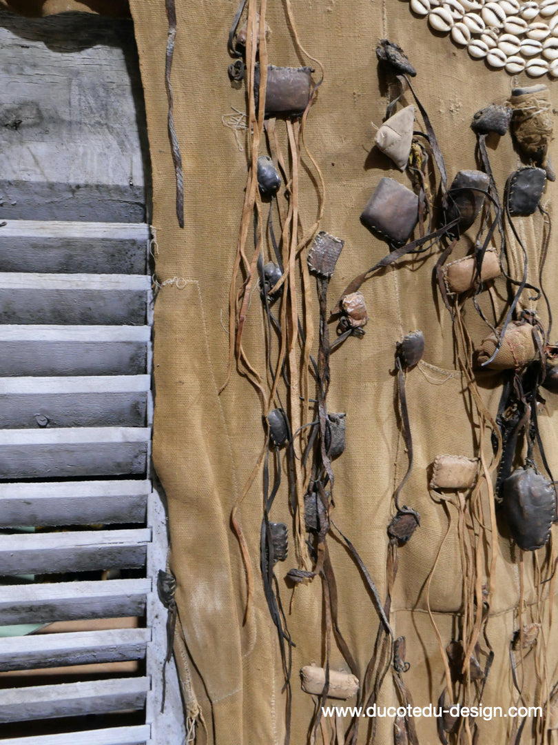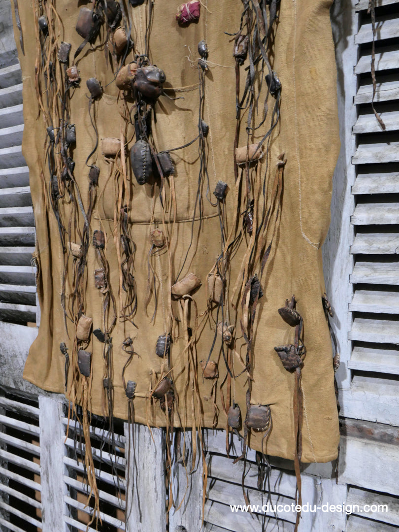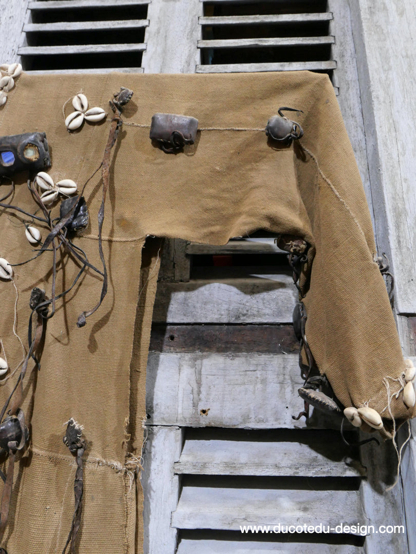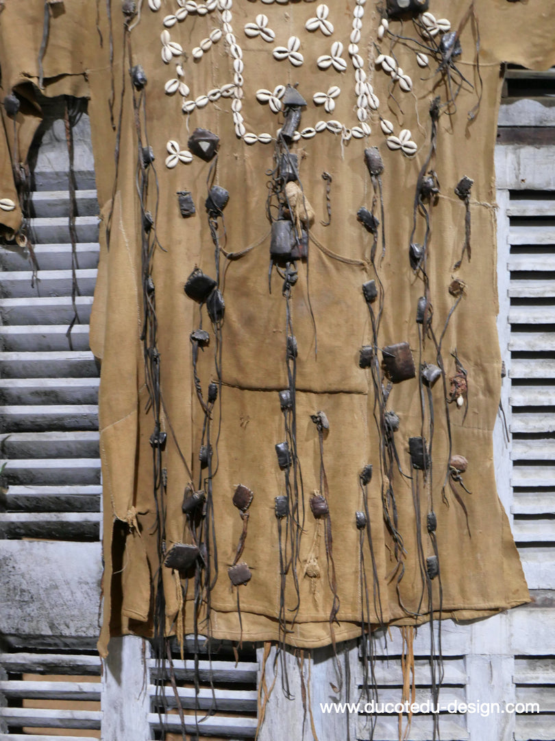 costume de chasse d'Afrique portant des reliques et des talismans