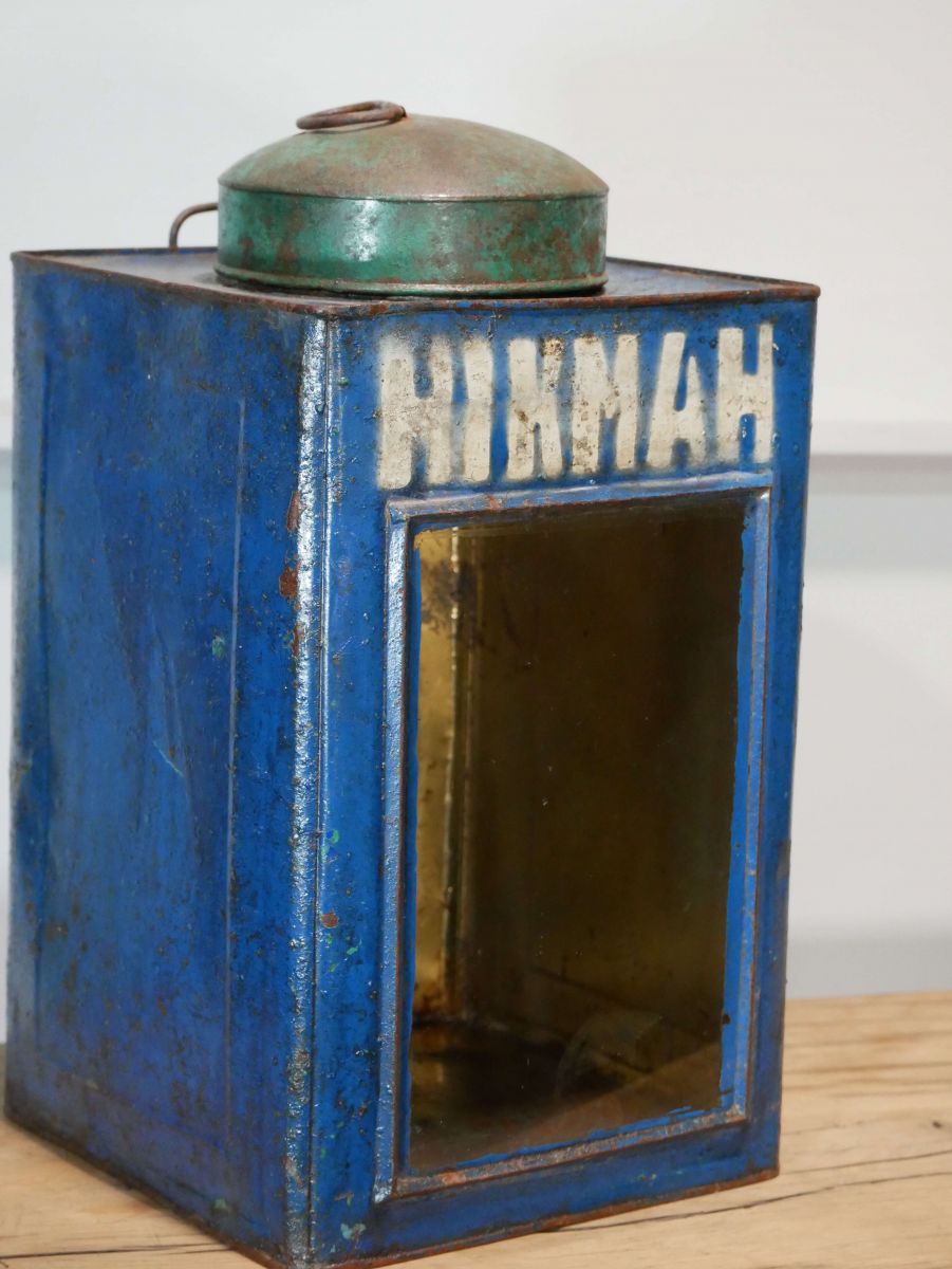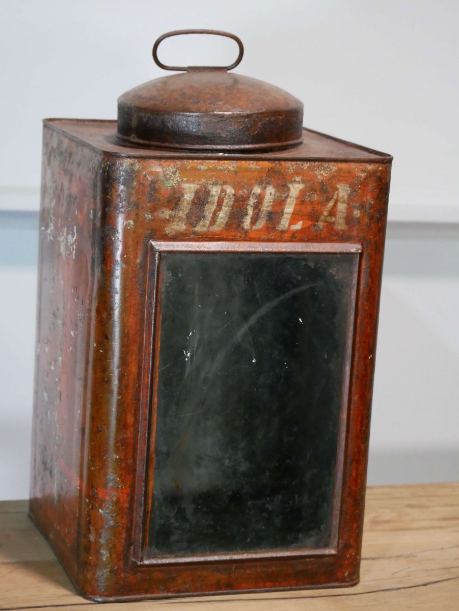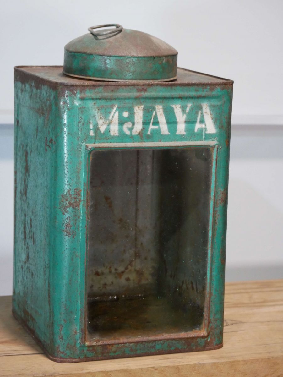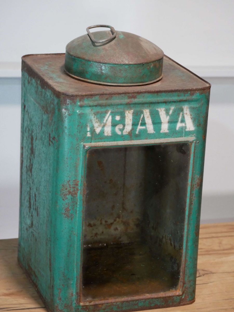 boite veilleuse vitrée en metal patinée