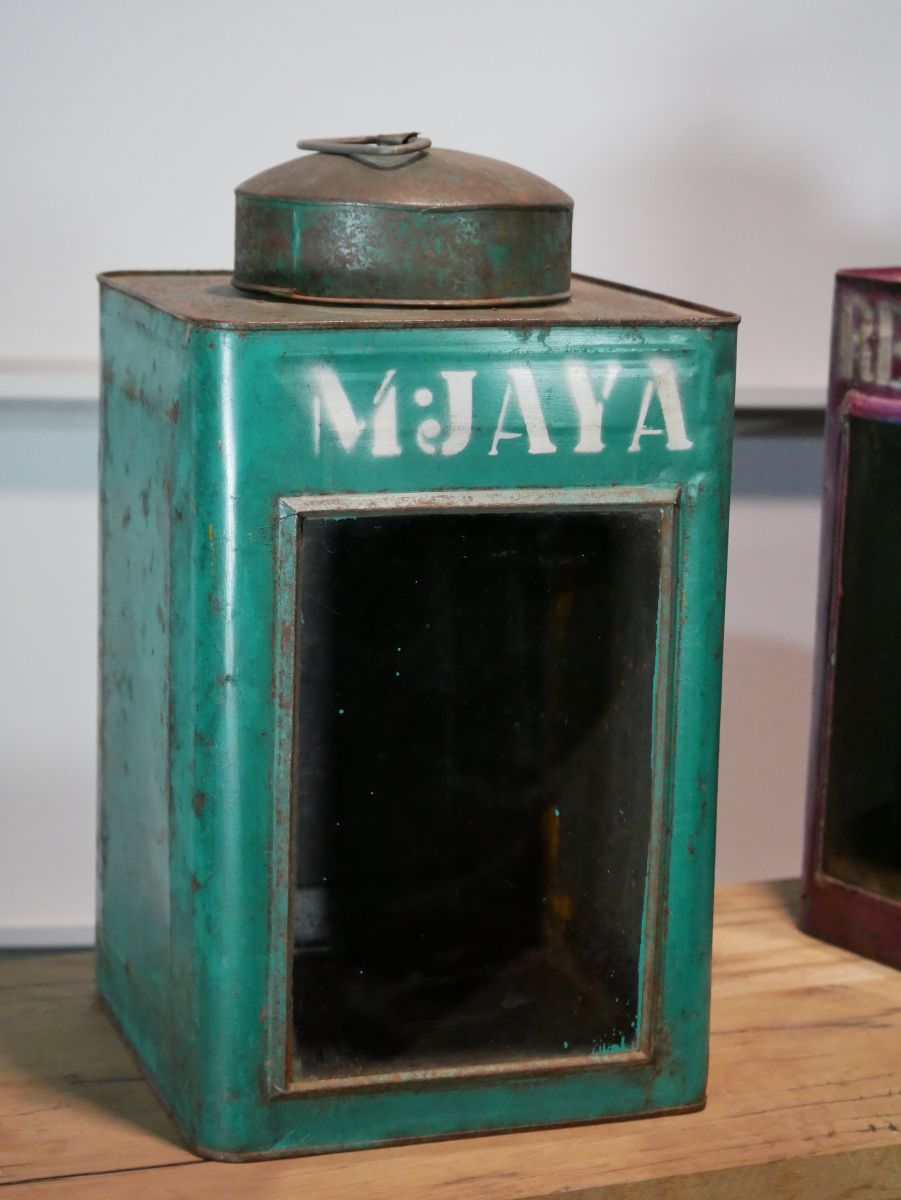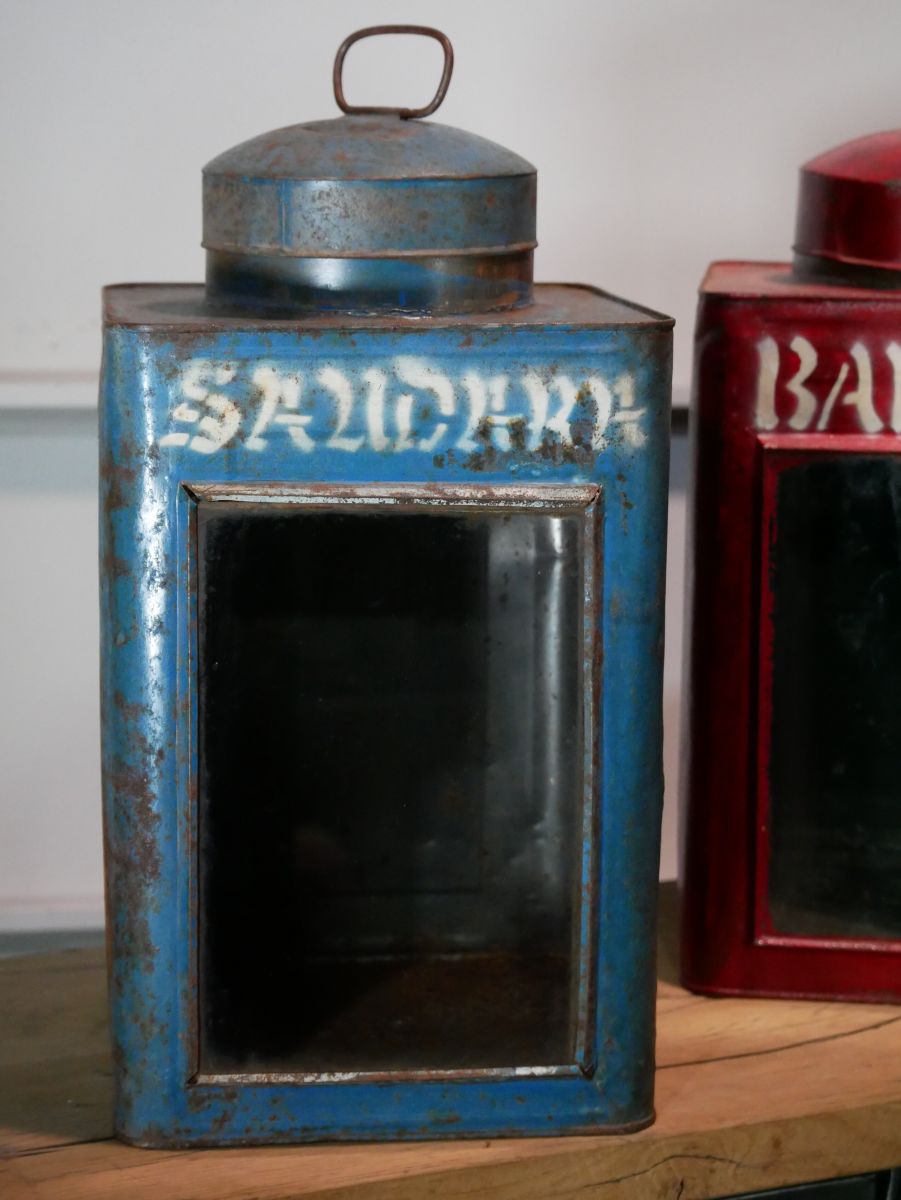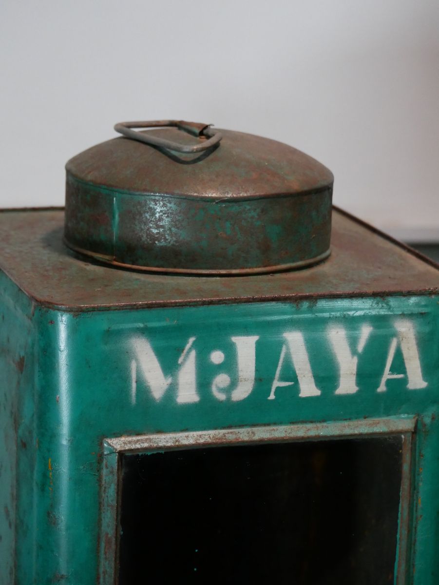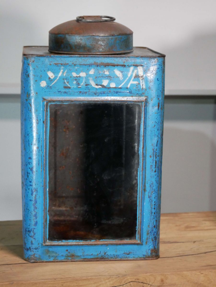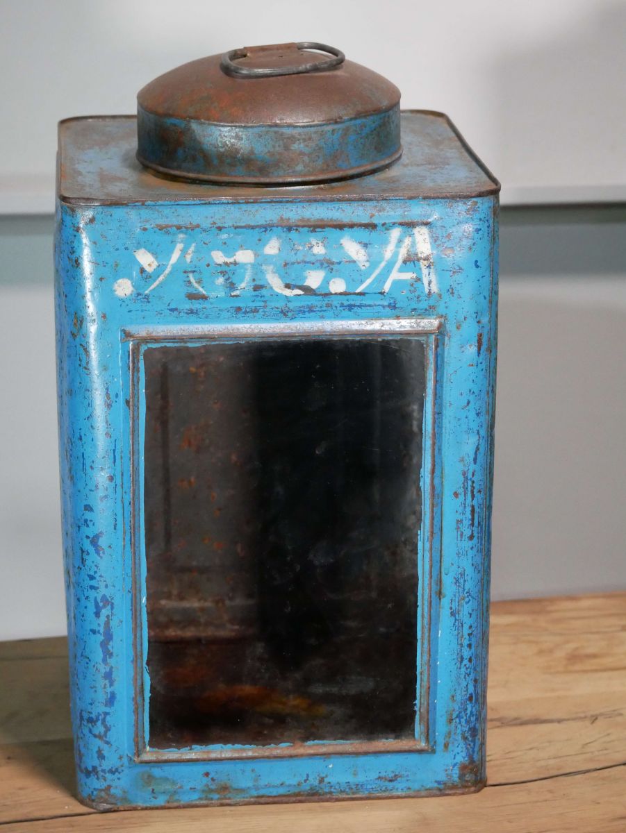 boite veilleuse vitrée en metal patinée