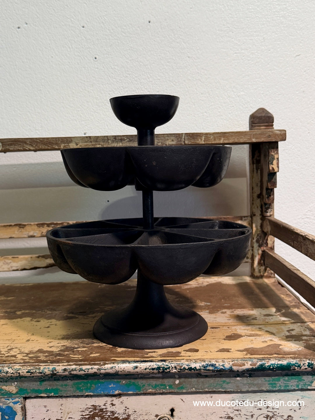 Marguerite de cordonnier ancienne en fonte - 3 niveaux - rangement atelier vintage