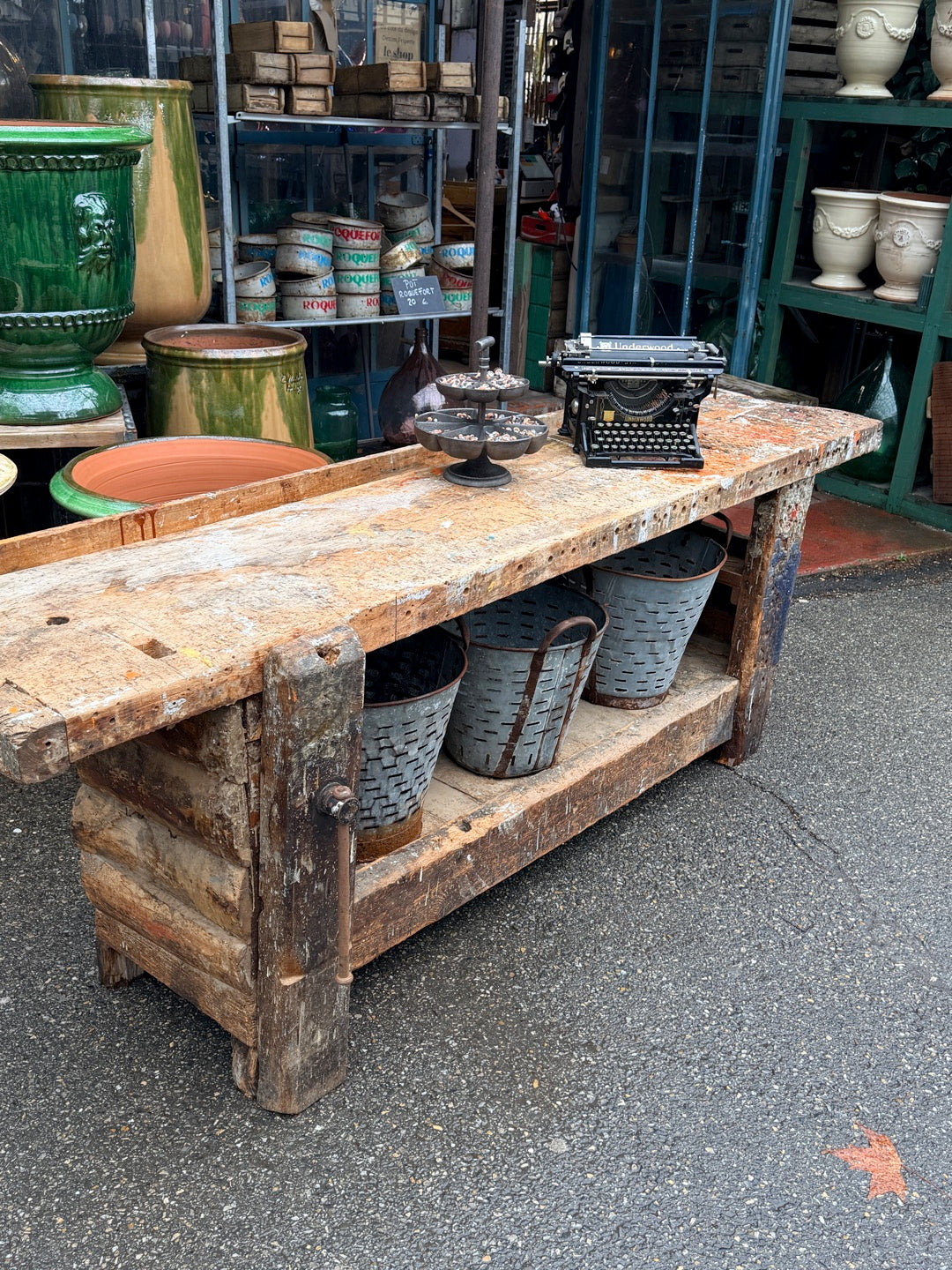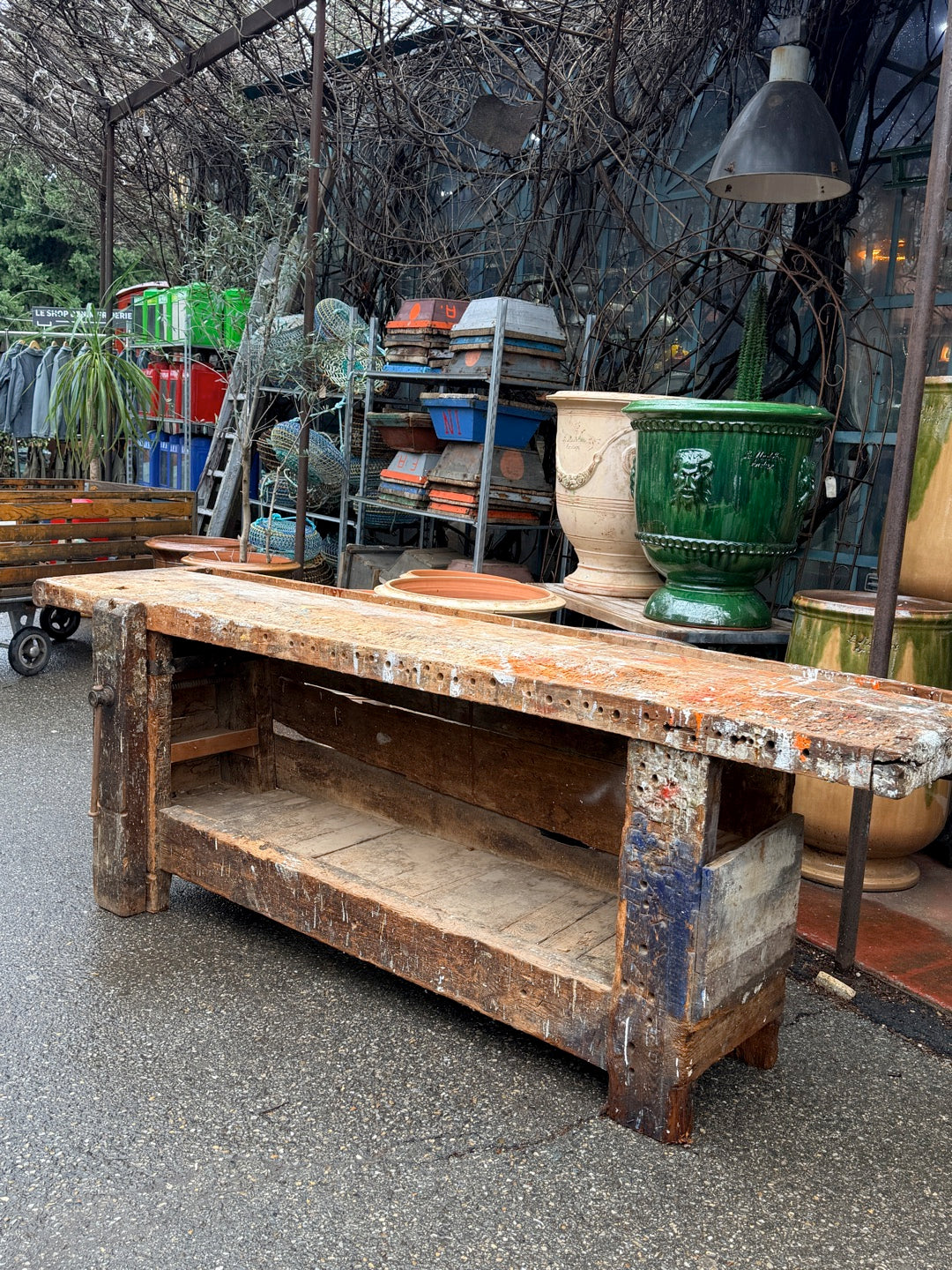Établi ancien d’ébéniste en bois massif – établi d’atelier vintage – meuble de métier industriel