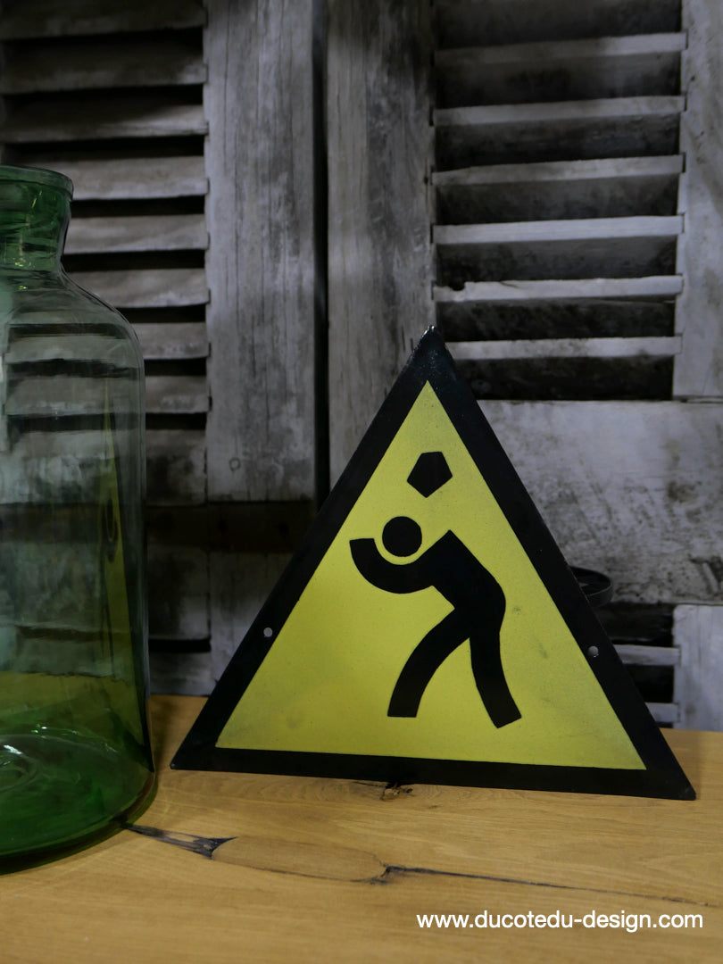 Plaque emaillee signalitique usine russe triangle danger ref T11