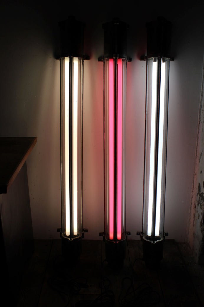 top deco ! tres grand kakemono rouge destination bus USA ligne floride annees 60/70 dans son jus