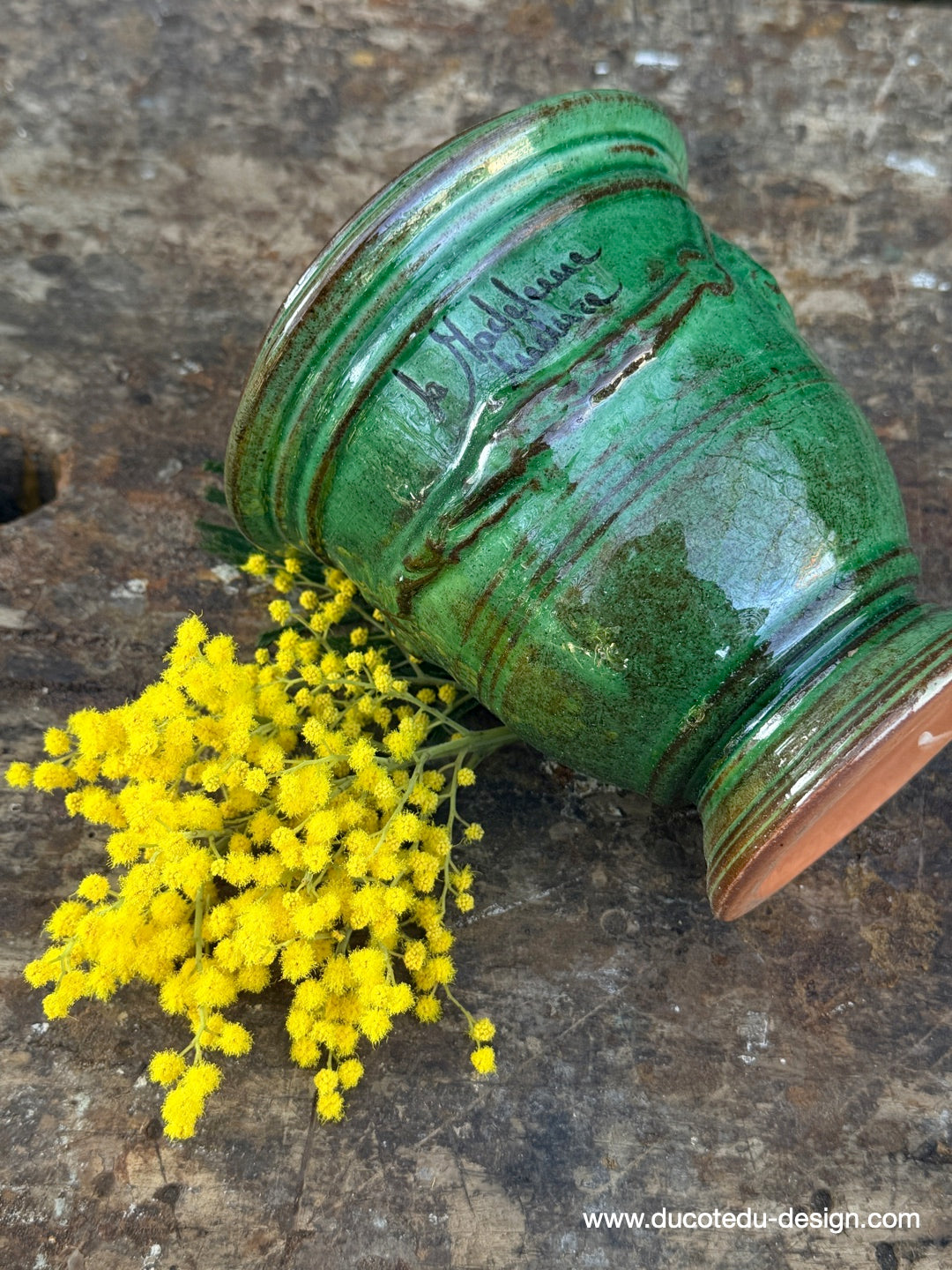Petit vase d'Anduze emaillé vert