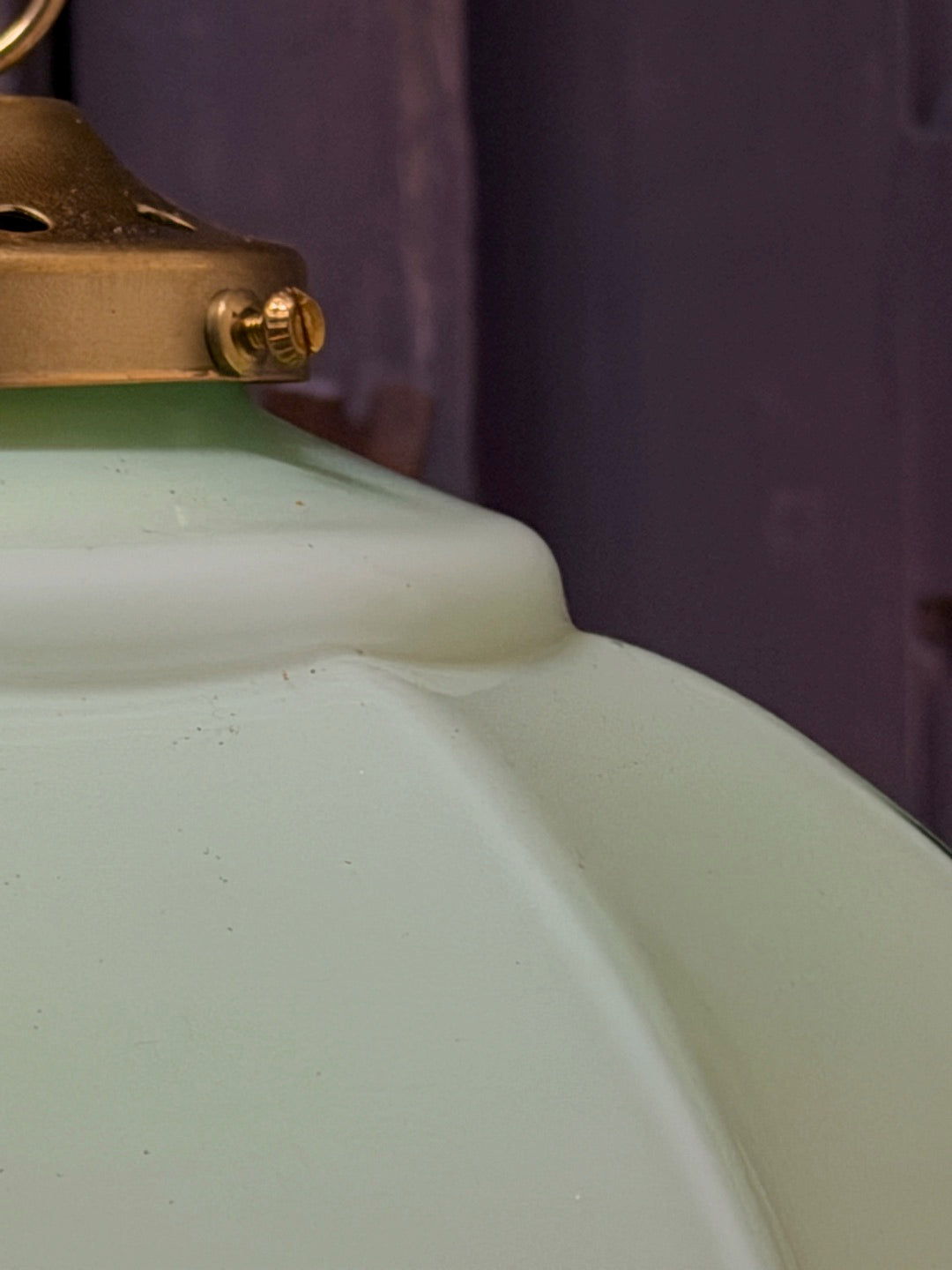 Suspension ancienne en opaline verte, abat-jour festonné vintage, luminaire campagne chic