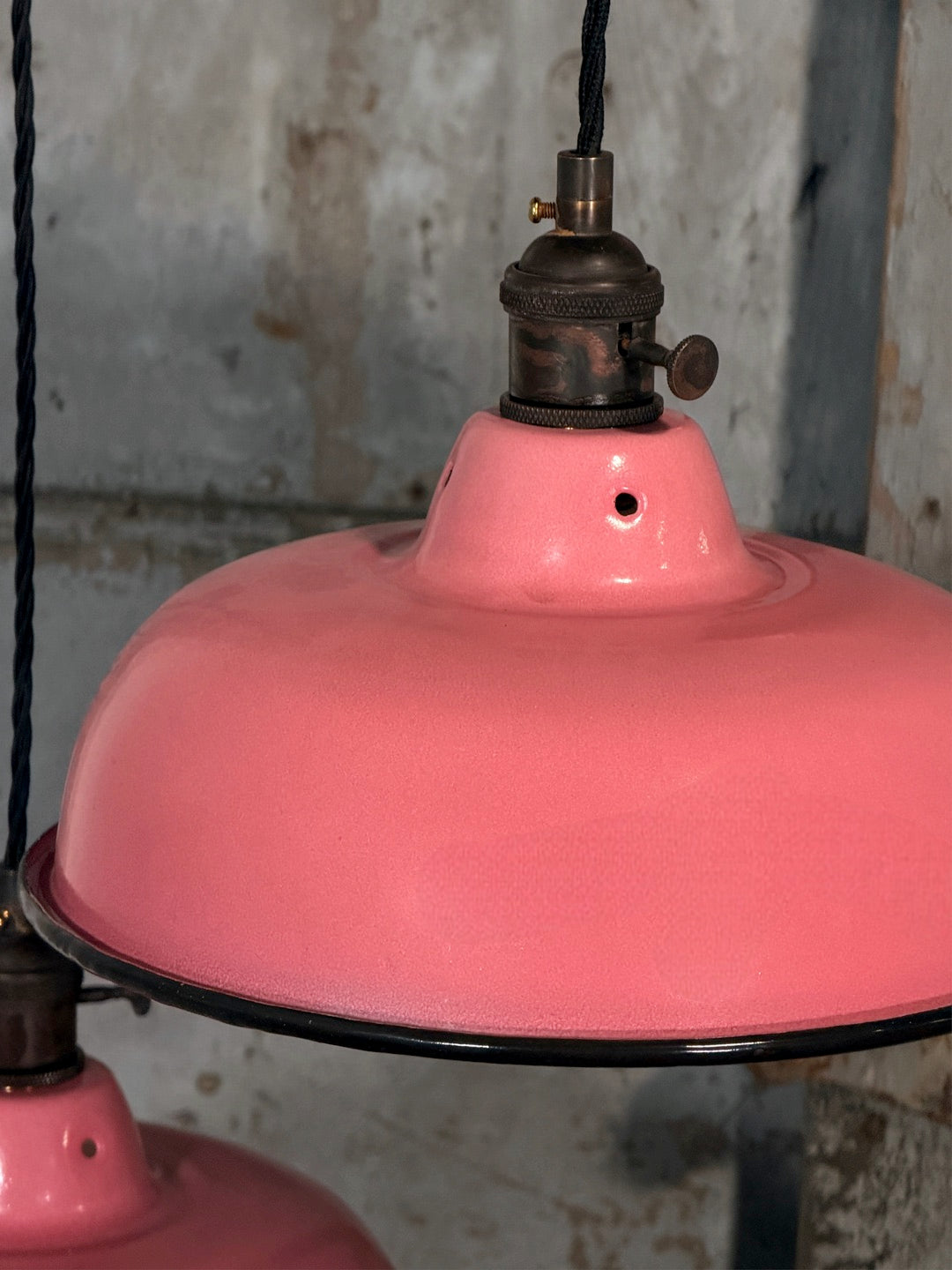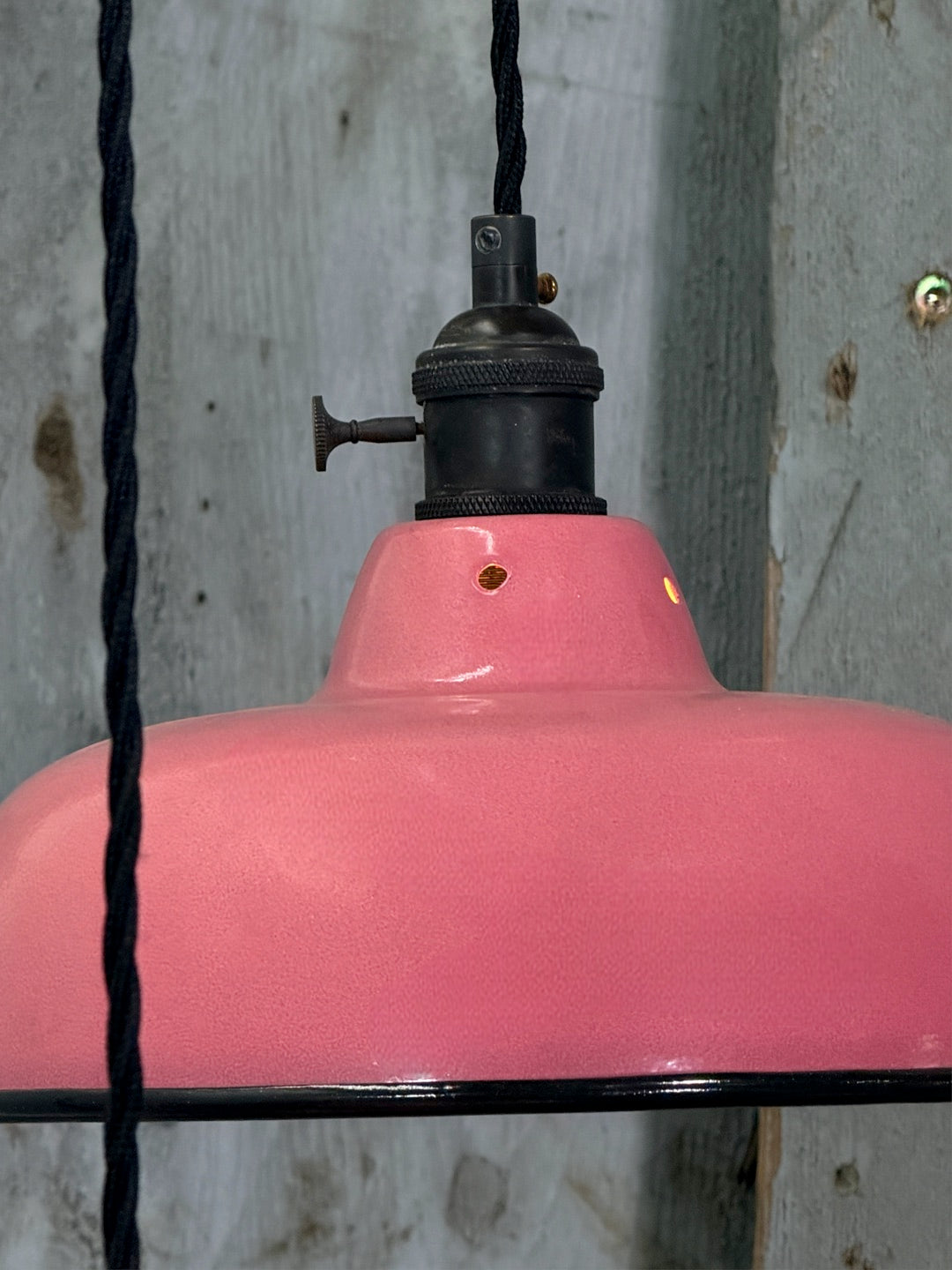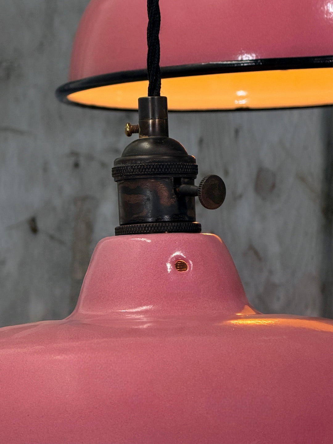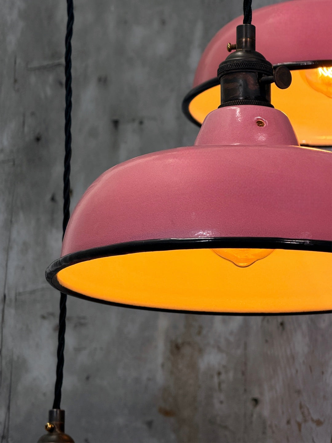 Suspension, lampe industrielle en tôle émaillée rose – luminaire abat jour atelier
