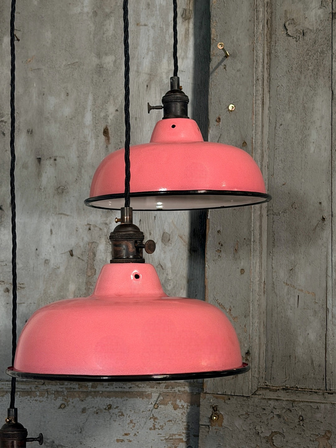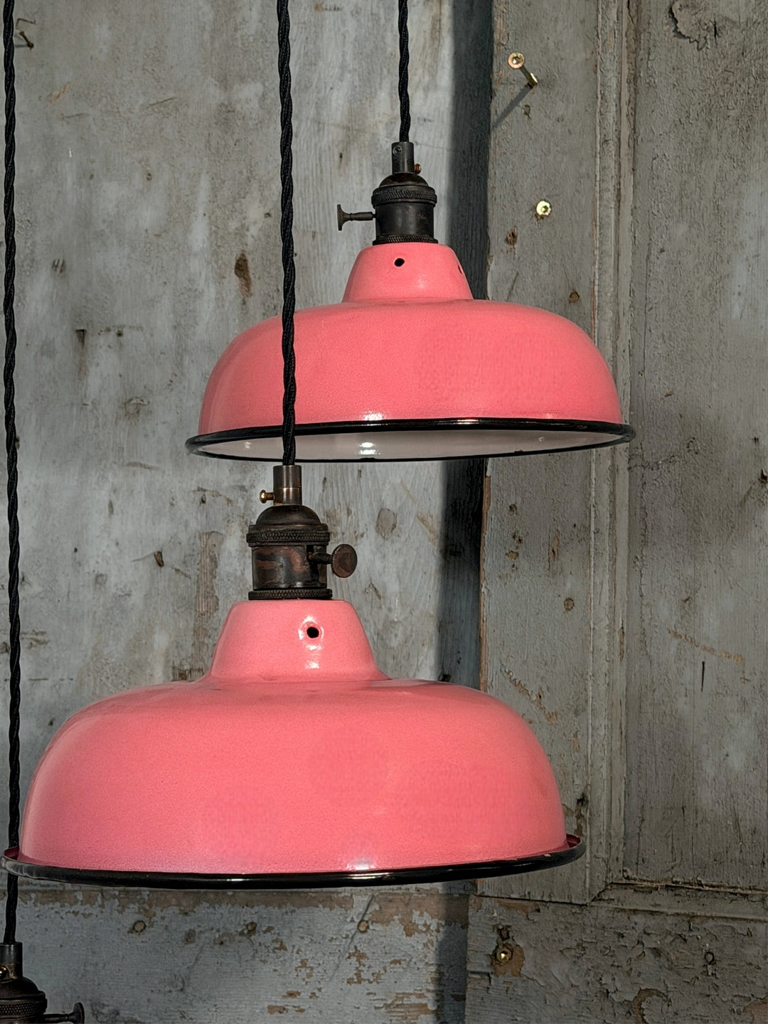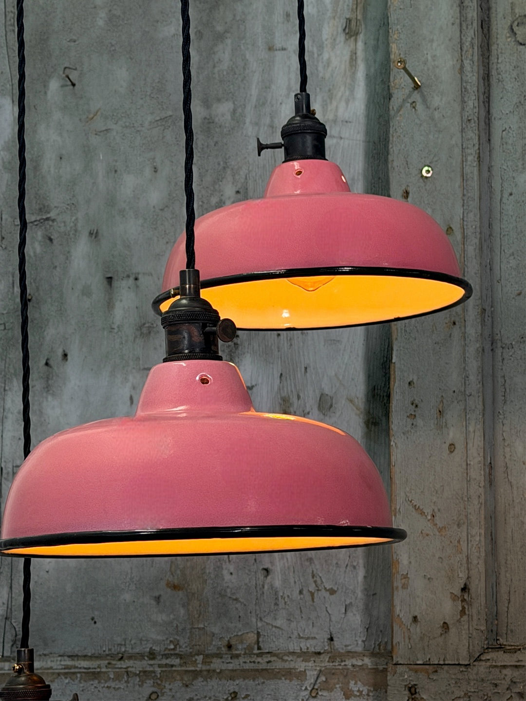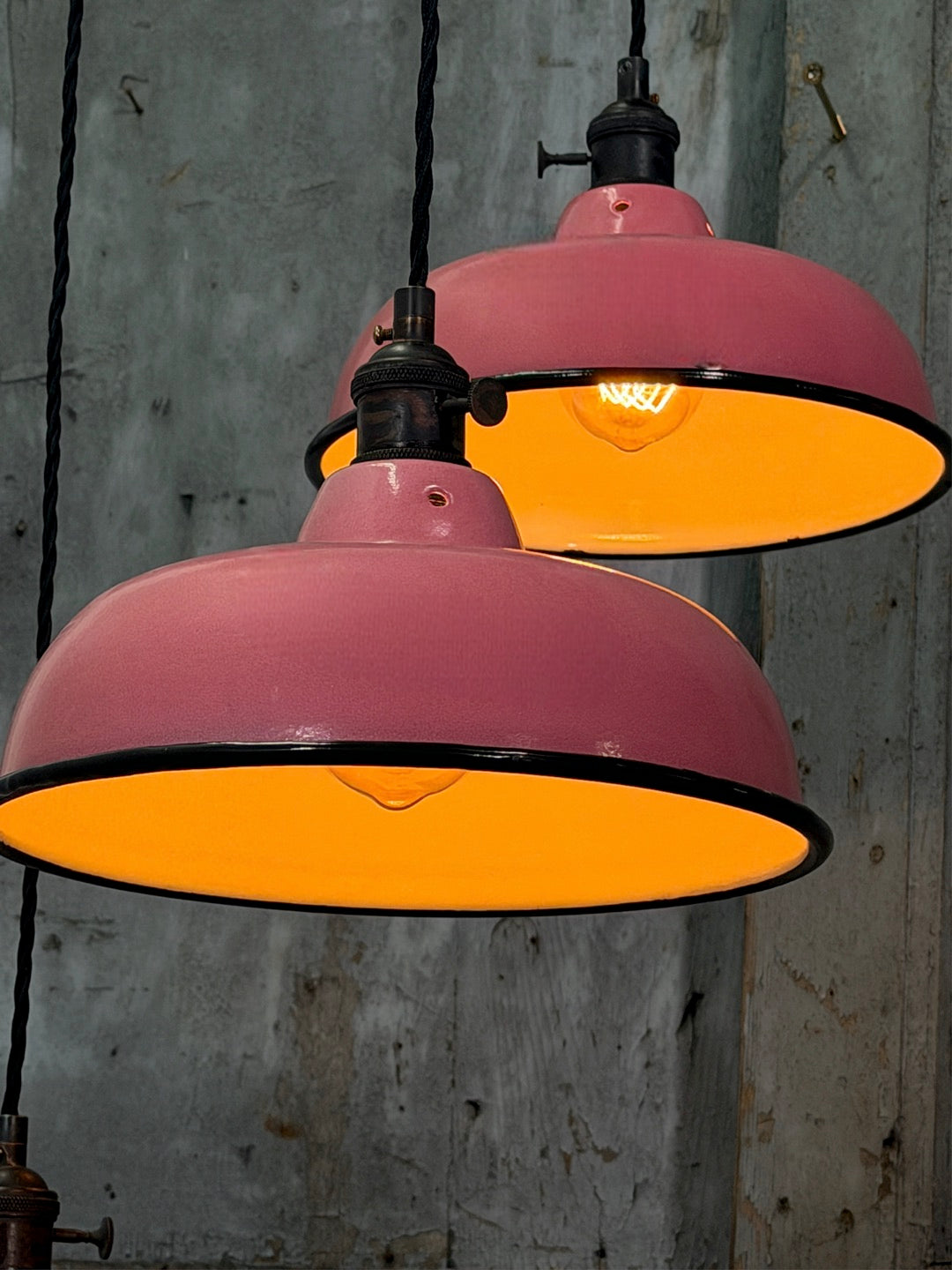 Suspension, lampe industrielle en tôle émaillée rose – luminaire abat jour atelier