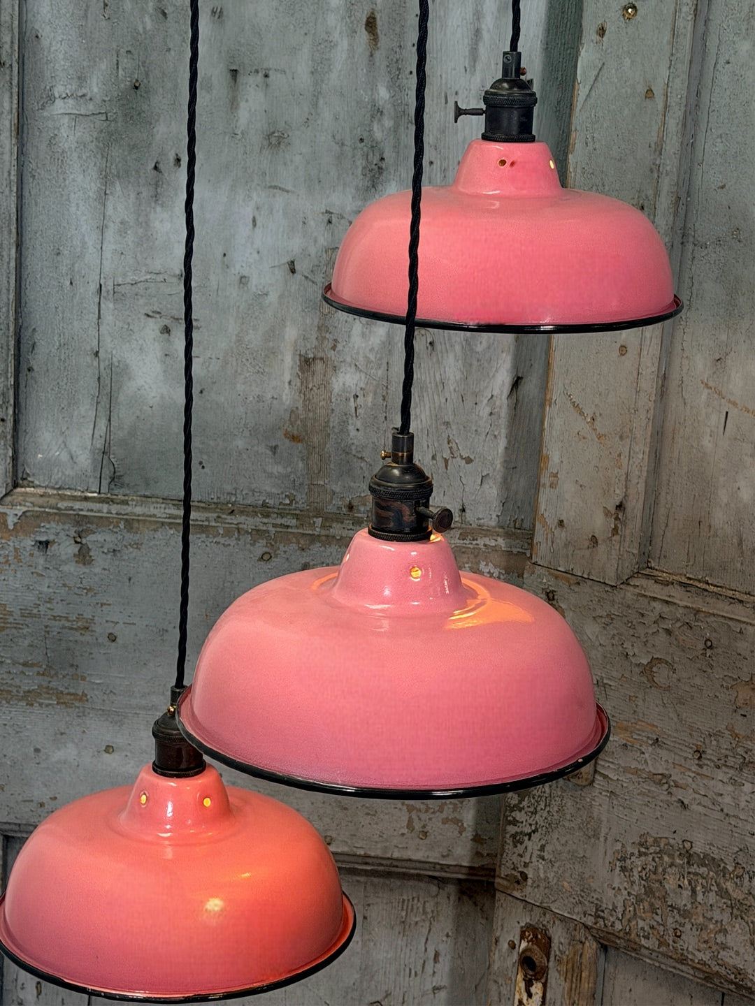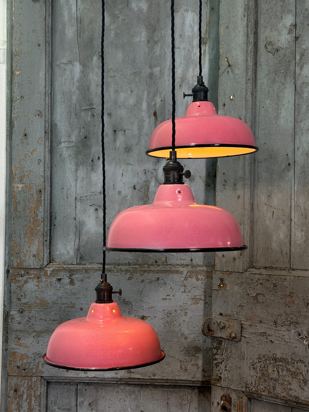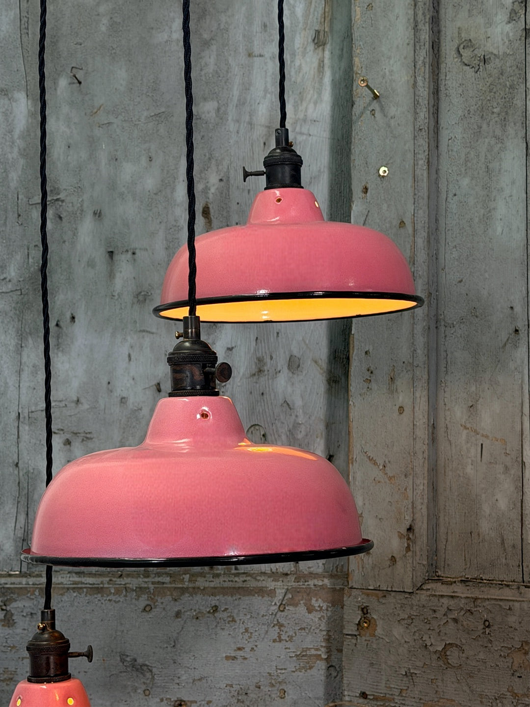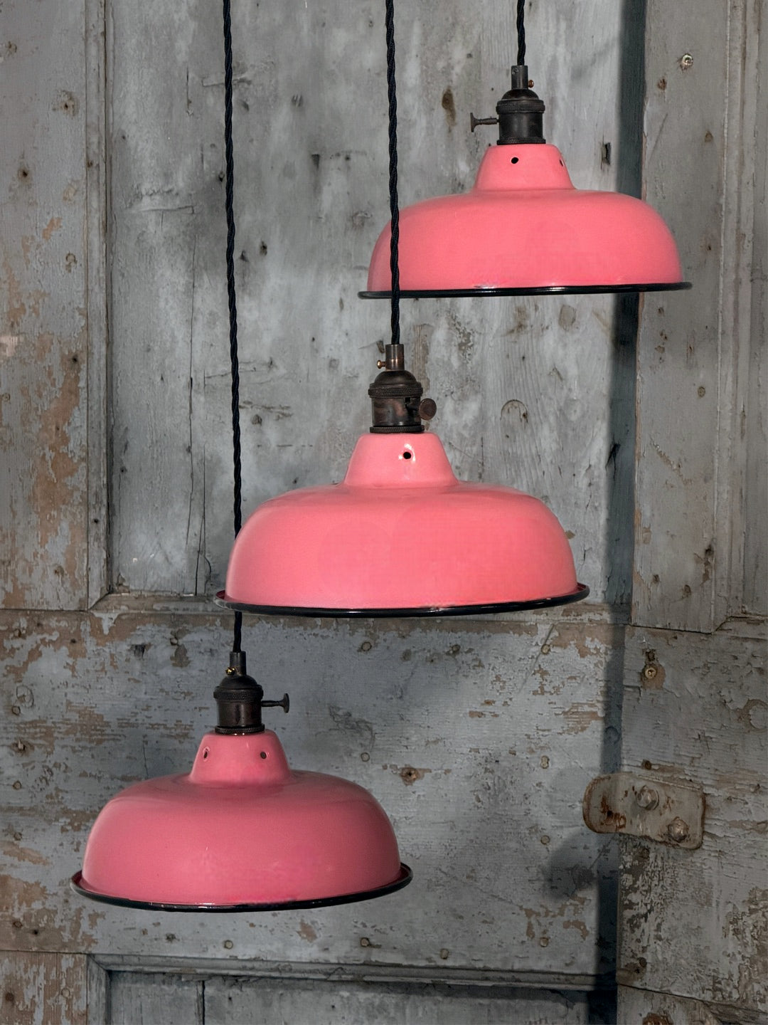 Suspension, lampe industrielle en tôle émaillée rose – luminaire abat jour atelier