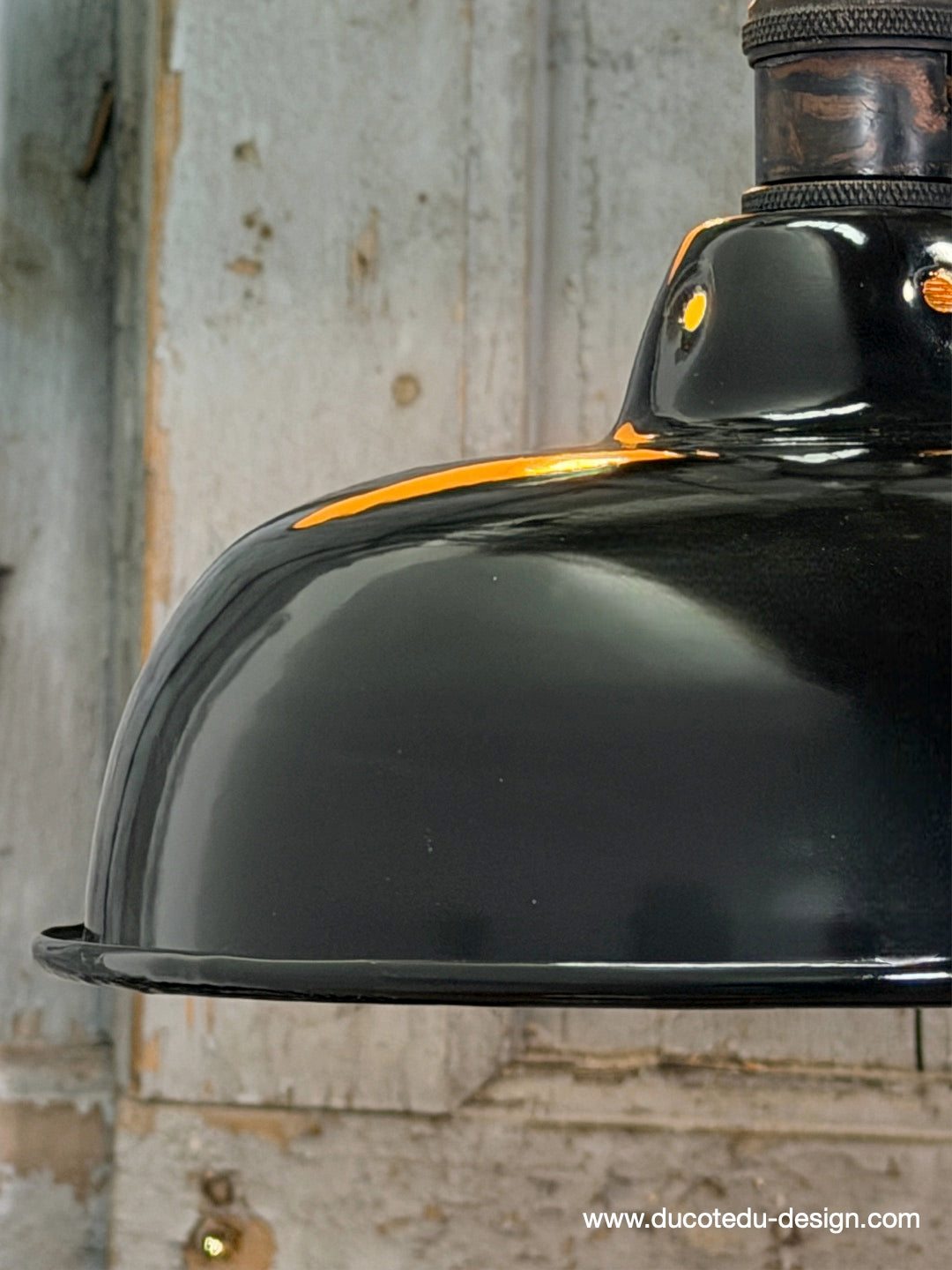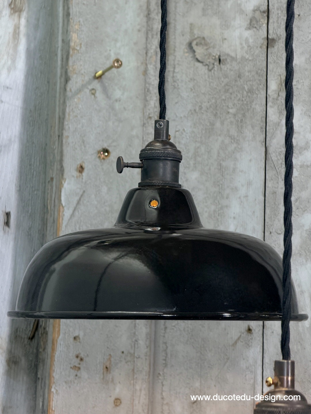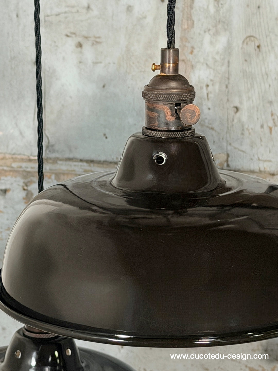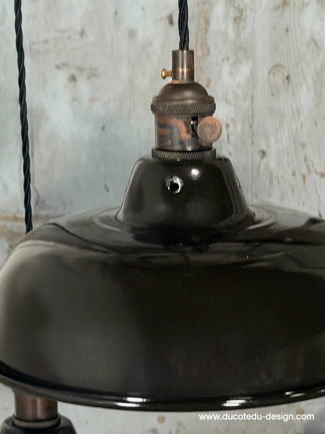 Suspension, lampe industrielle en tôle émaillée noir – luminaire abat jour atelier