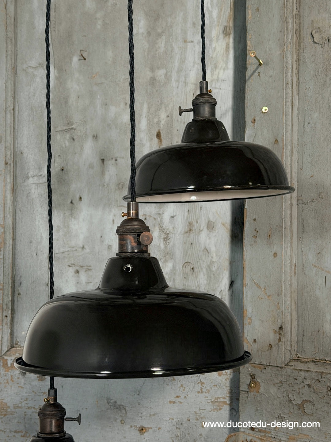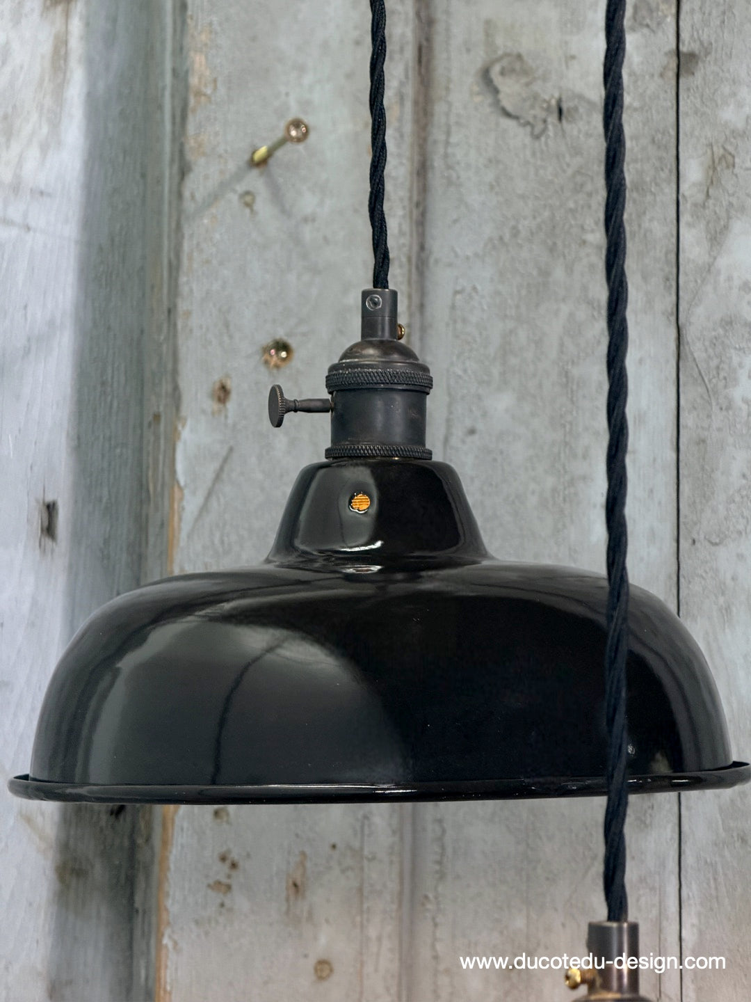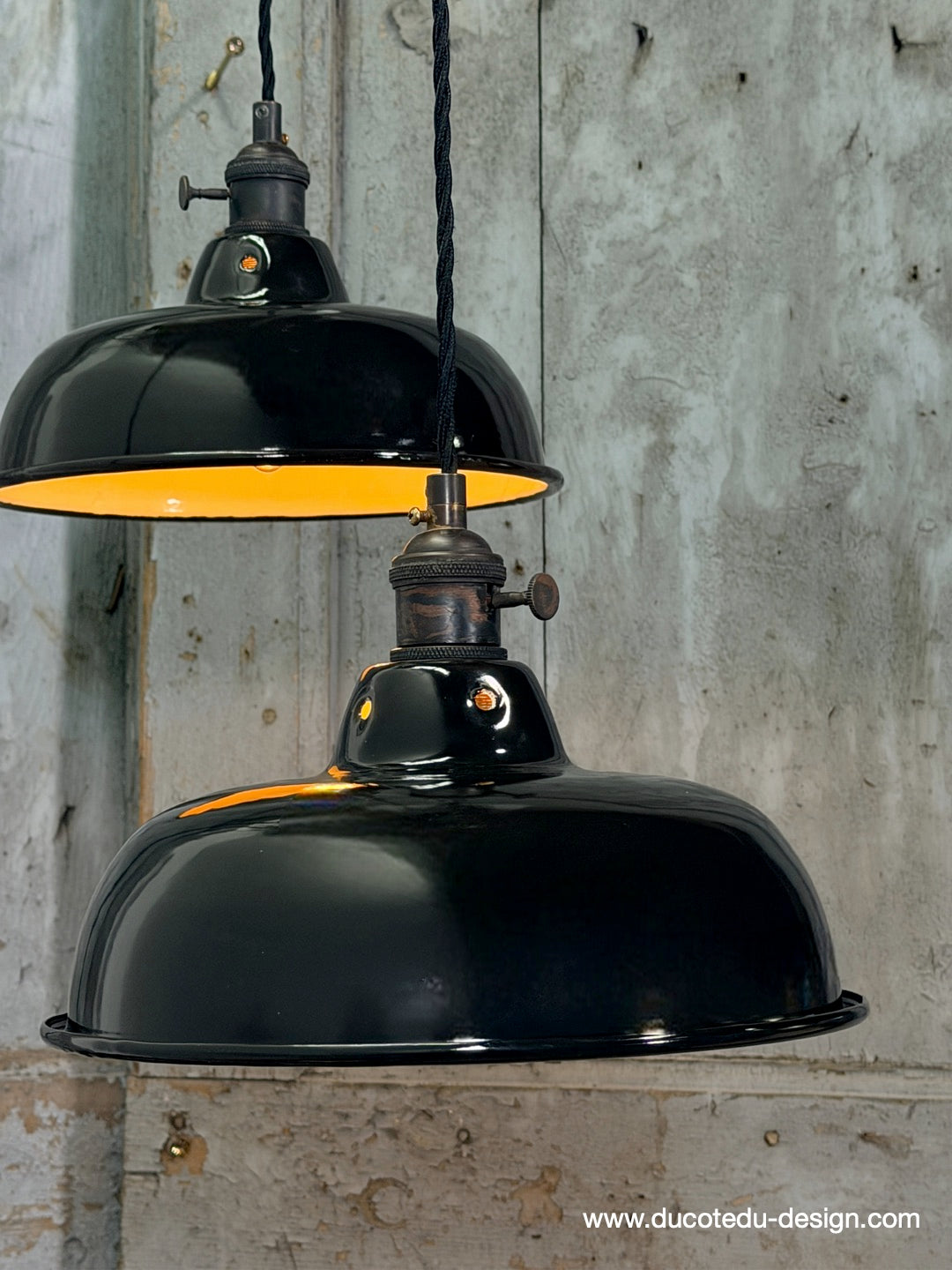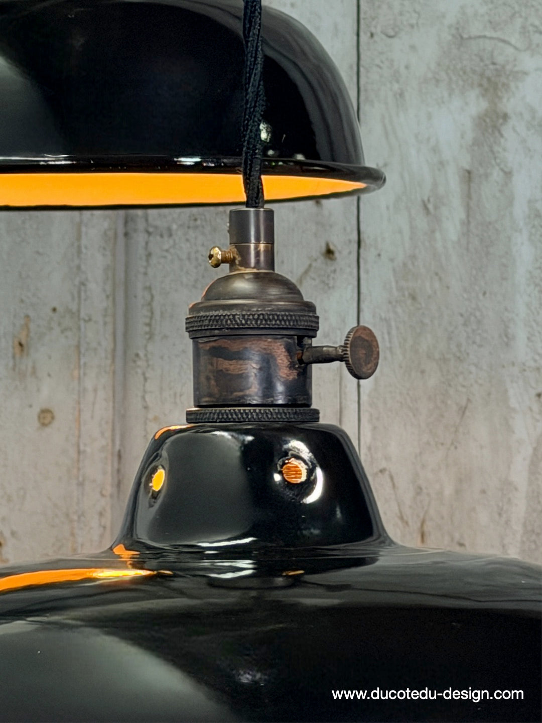 Suspension, lampe industrielle en tôle émaillée noir – luminaire abat jour atelier