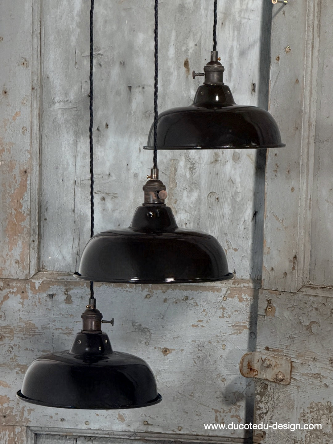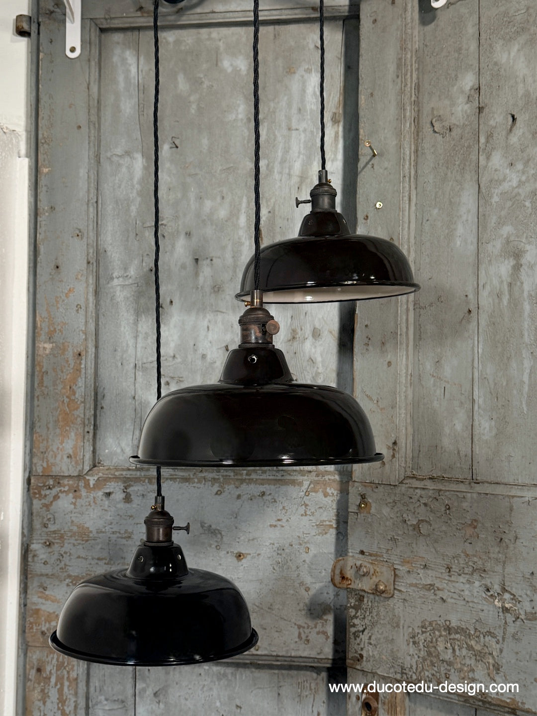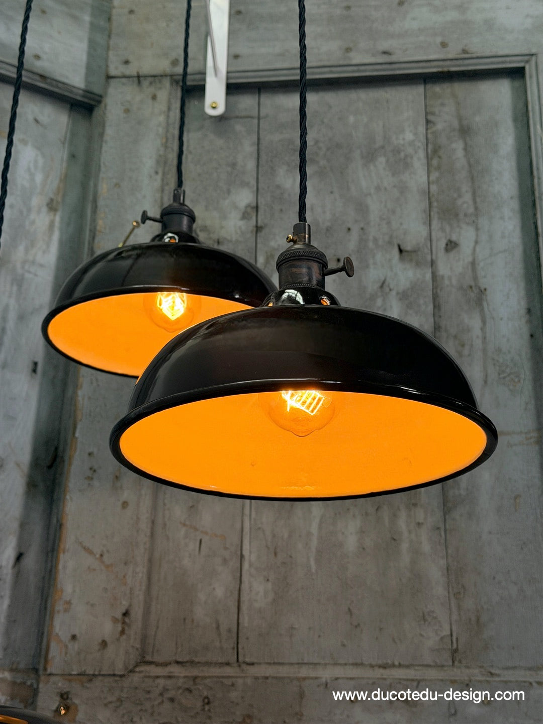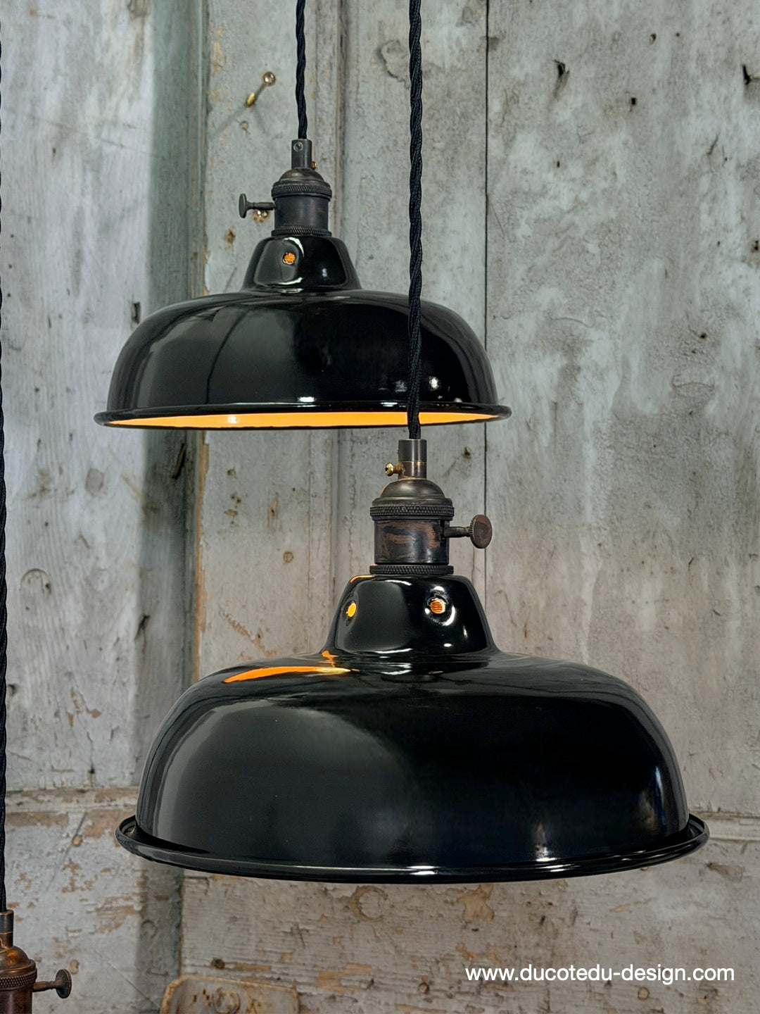 Suspension, lampe industrielle en tôle émaillée noir – luminaire abat jour atelier