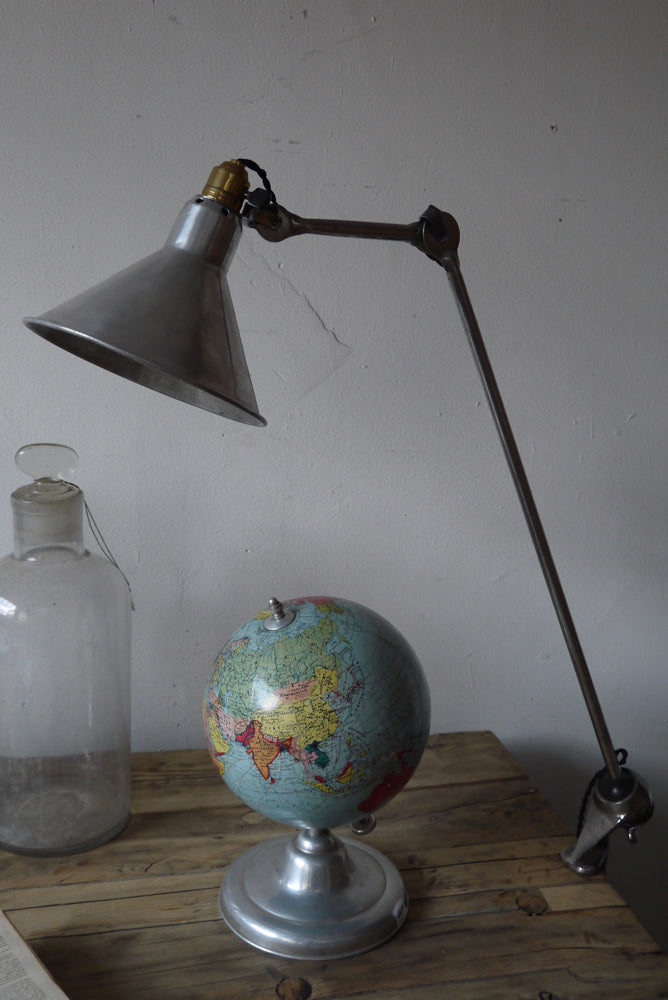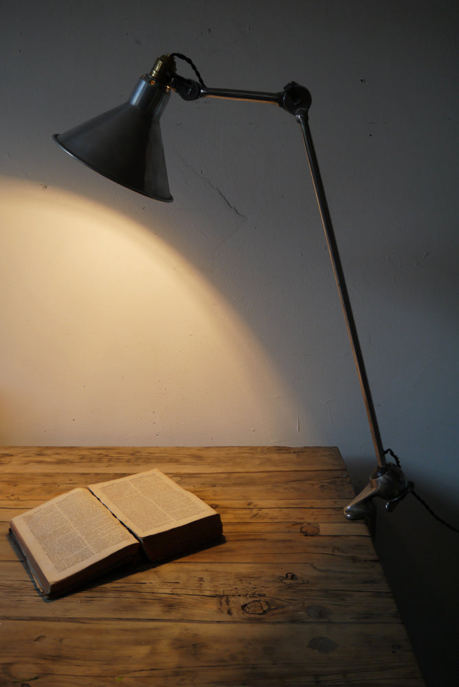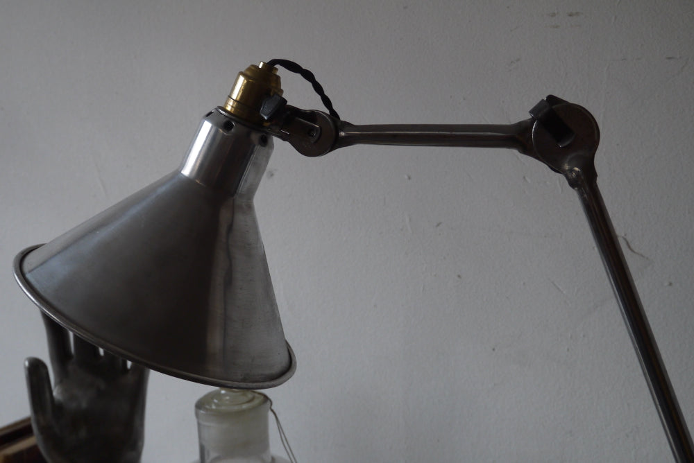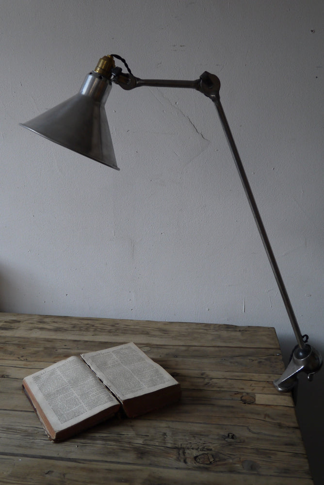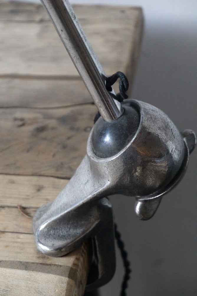 superbe ancienne lampe industrielle Gras abat jour dessinateur polie miroir