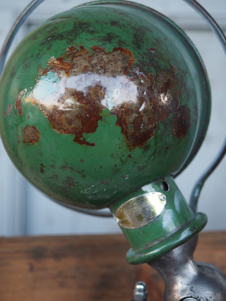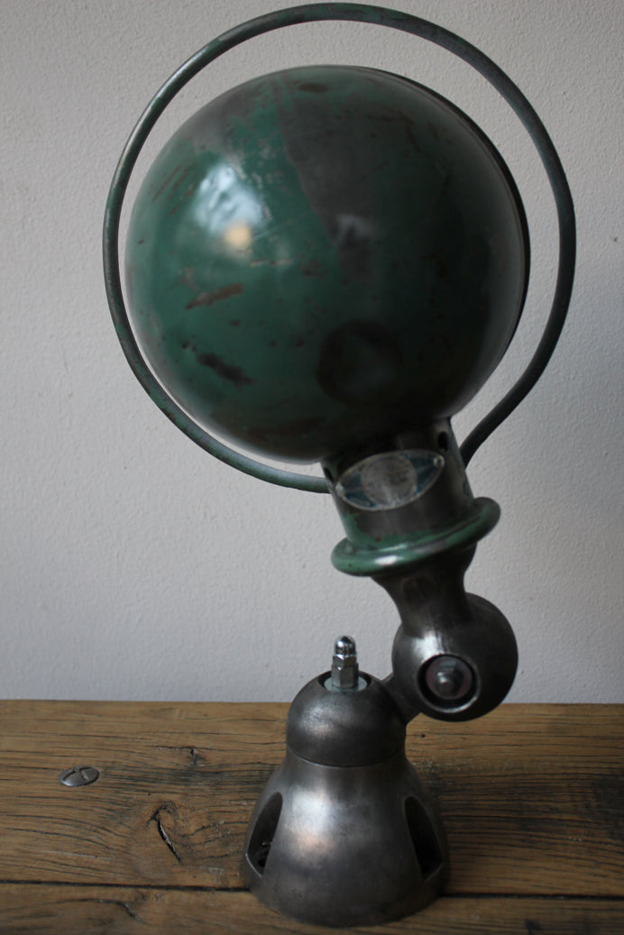 Lampe d atelier industrielle Jielde 2 bras avec etau couleur d'origine verte