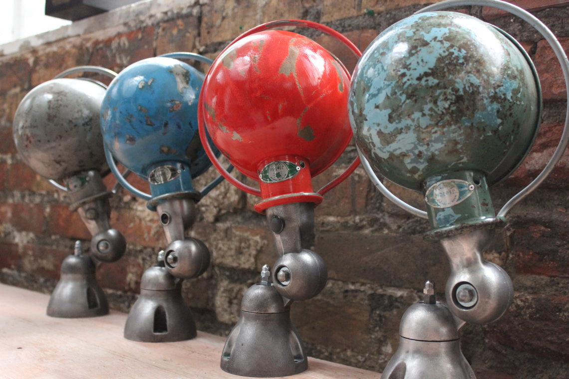 Unique lampe Liseuse Jielde finition vintage bleu industriel