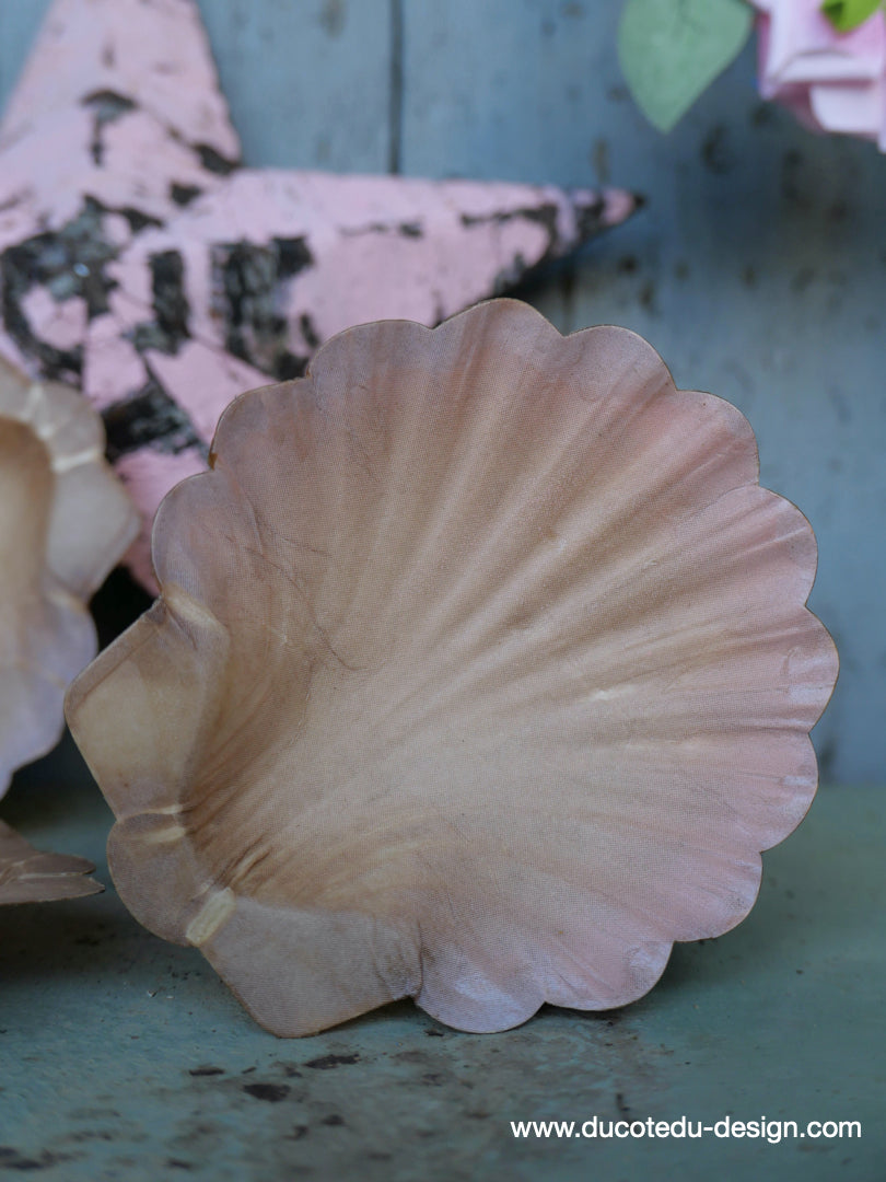 vide poche en carton bouilli / coquille saint jacques rose lot de 3