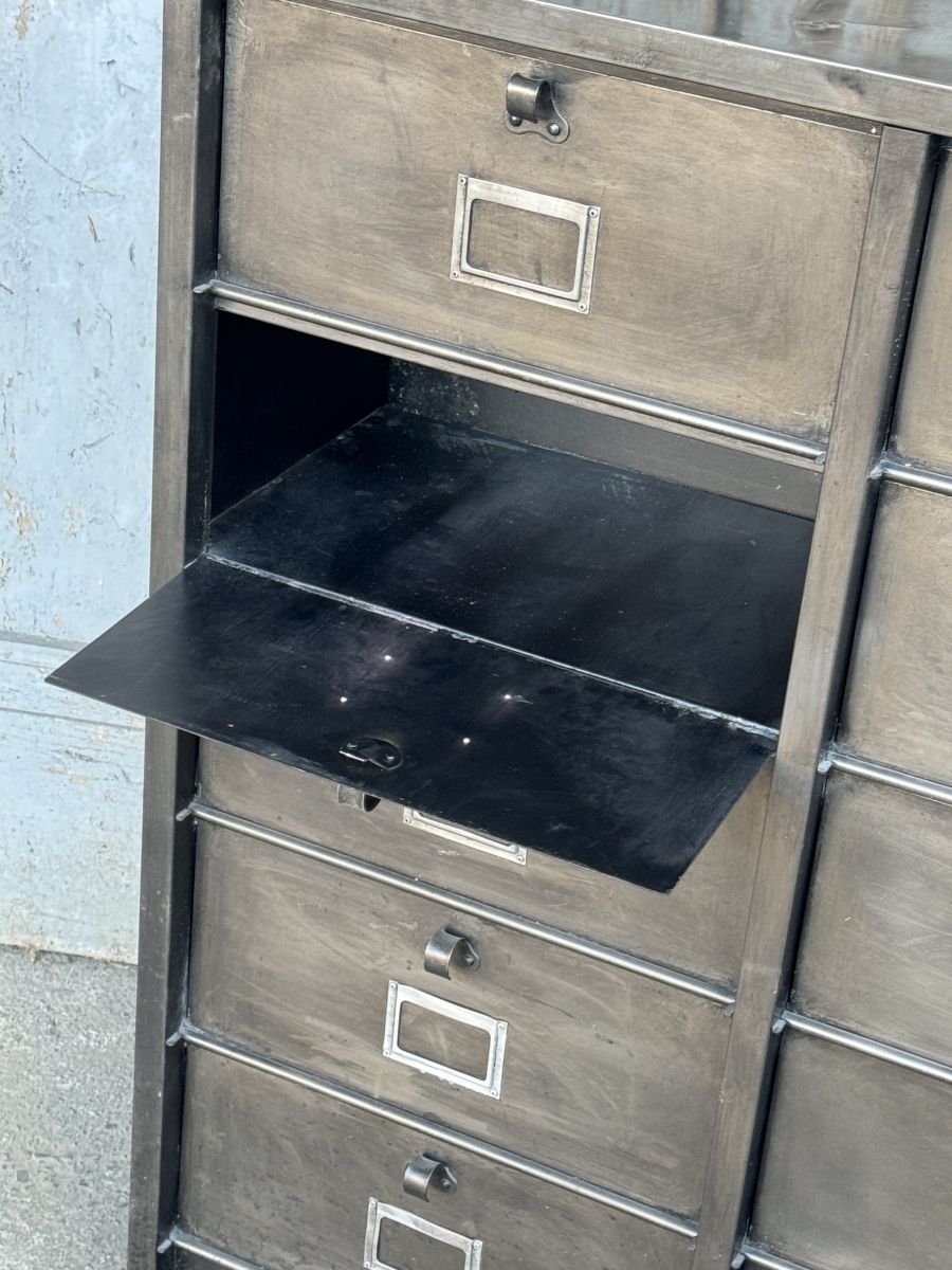 ancien meuble console 10 casiers industriel a clapet strafor 1950 plateau metal