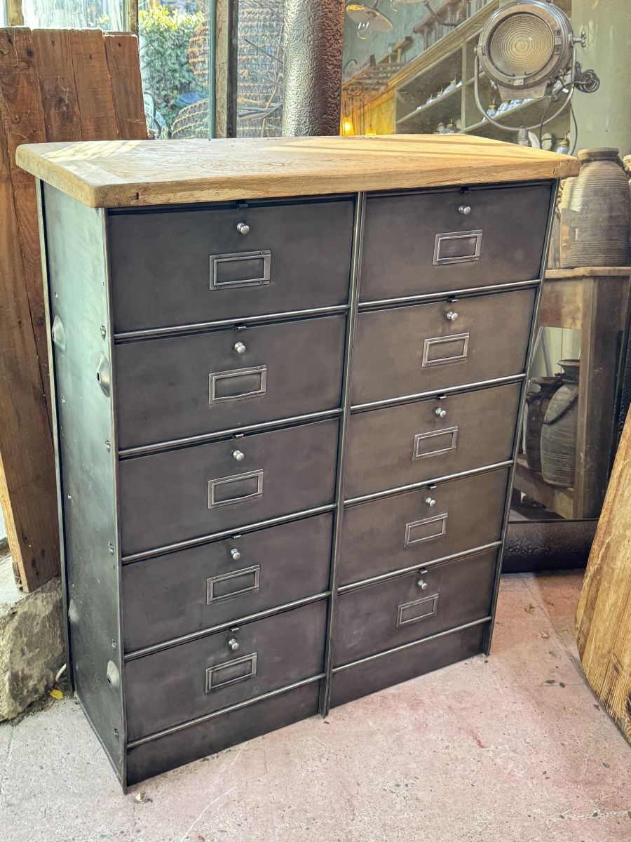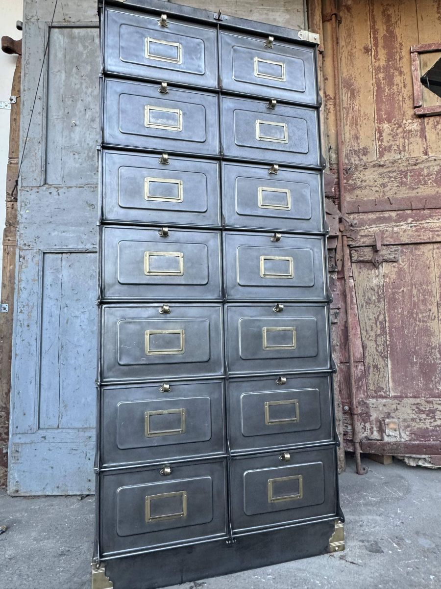 Meuble militaire 16 tiroirs en métal - ancien mobilier d'armée - rangement industriel