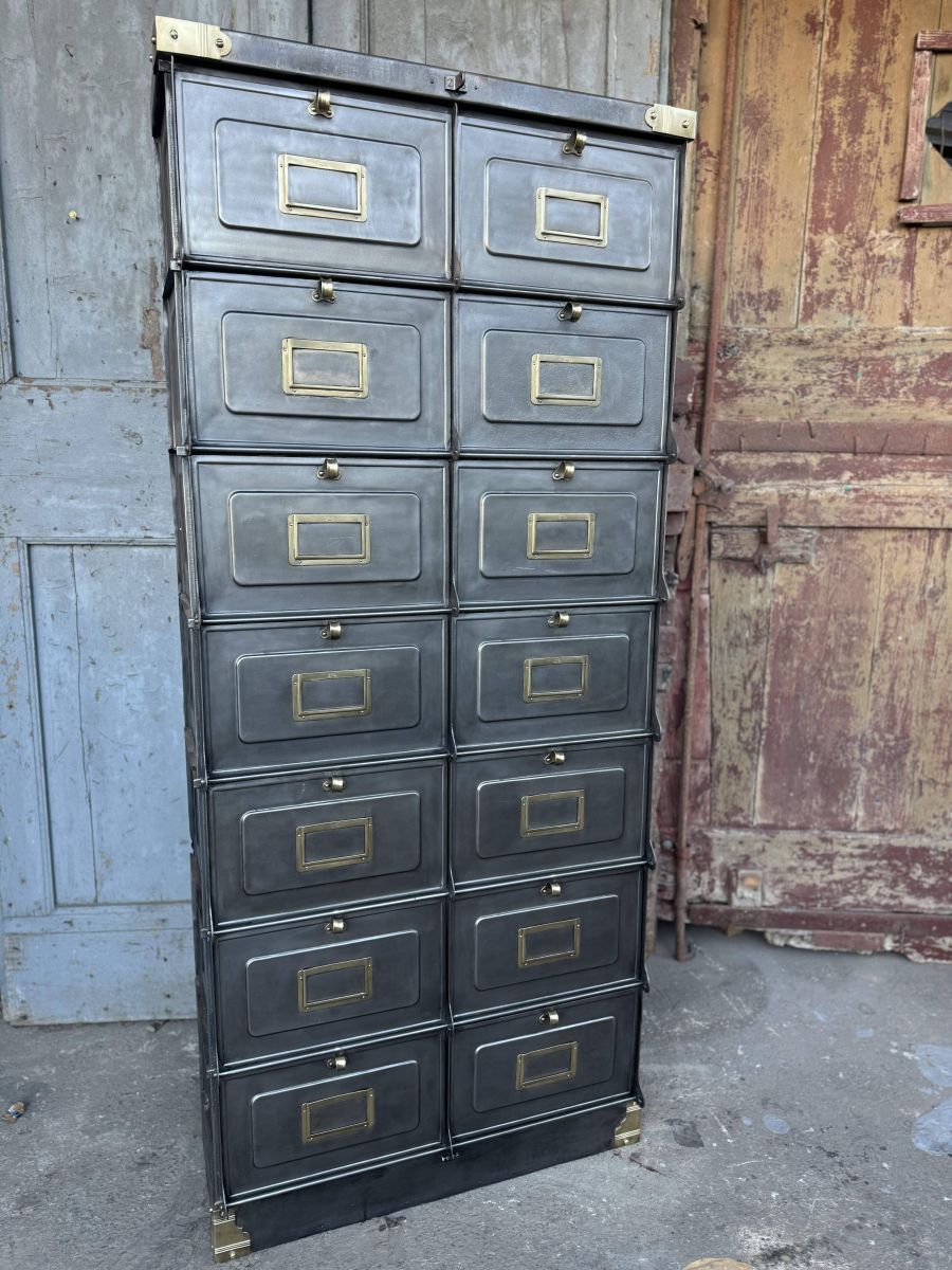 ancien grand meuble 14 casiers industriel a clapet strafor 1920
