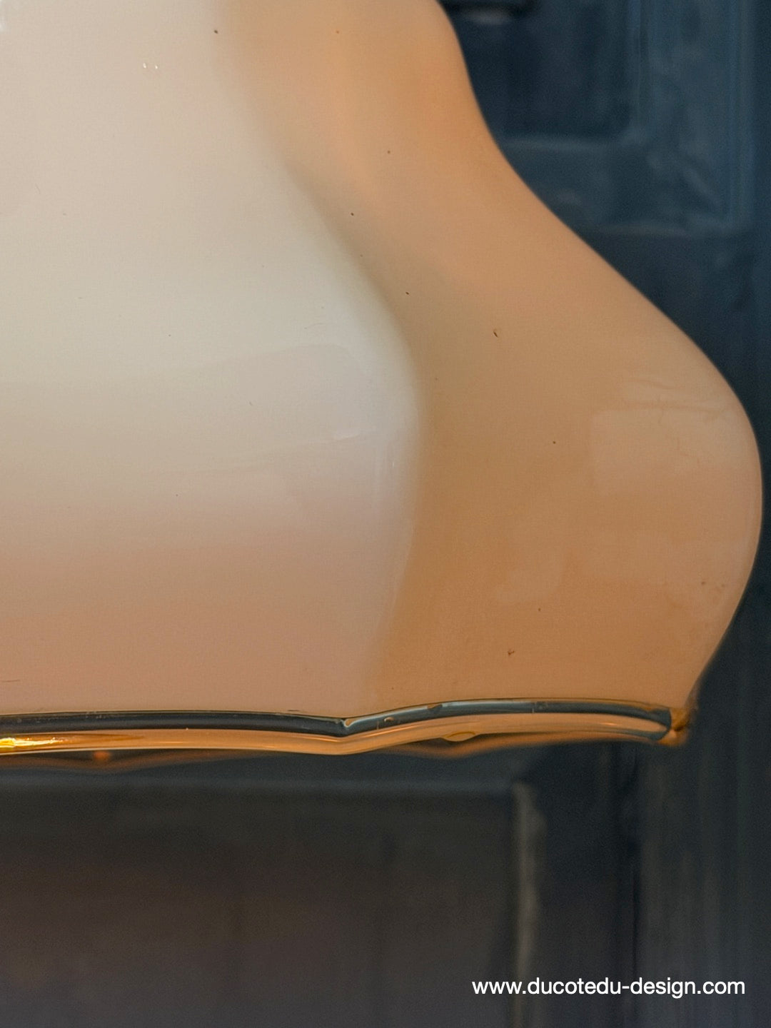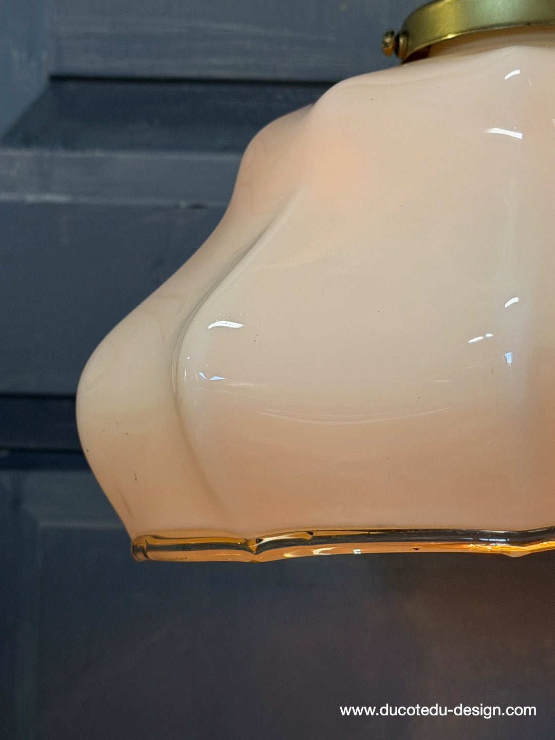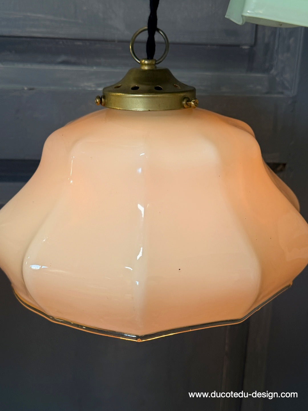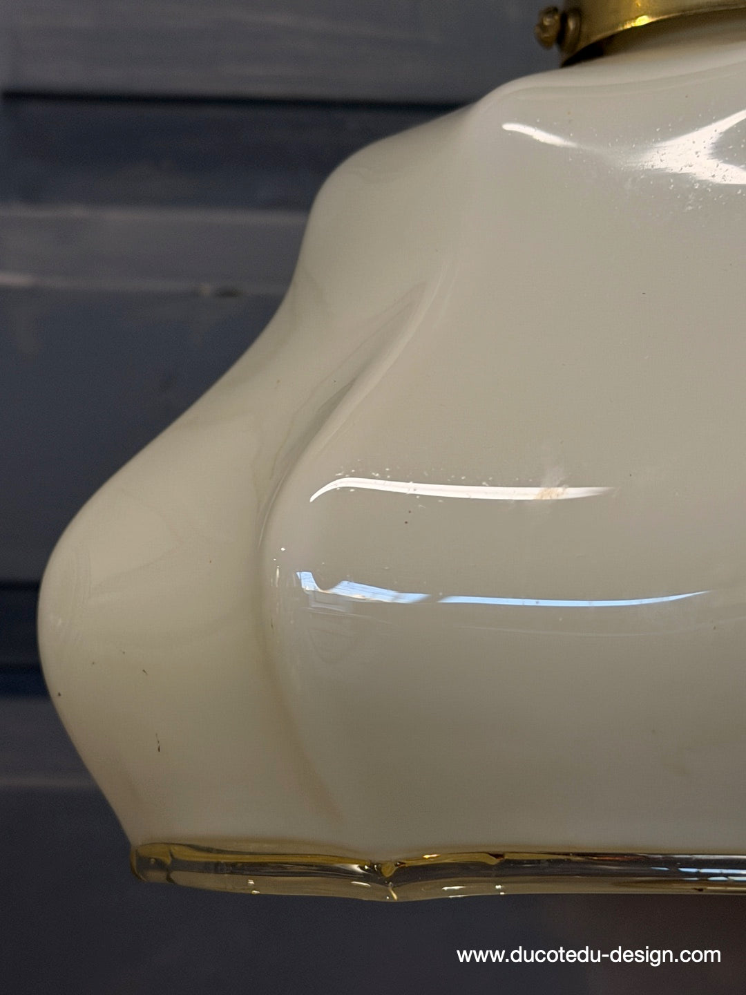 Suspension ancienne en opaline creme, abat-jour festonné vintage, luminaire campagne chic