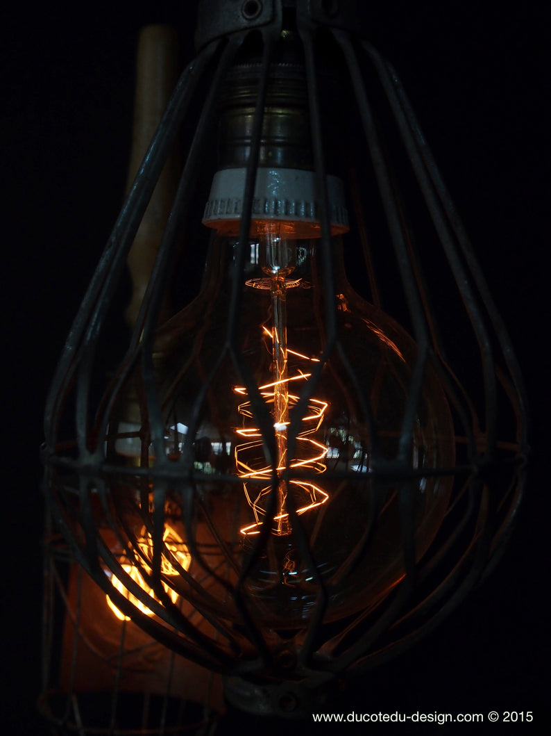 la cage en fer s'ouvre et se ferme afin de proteger l'ampoule lors des manipulations