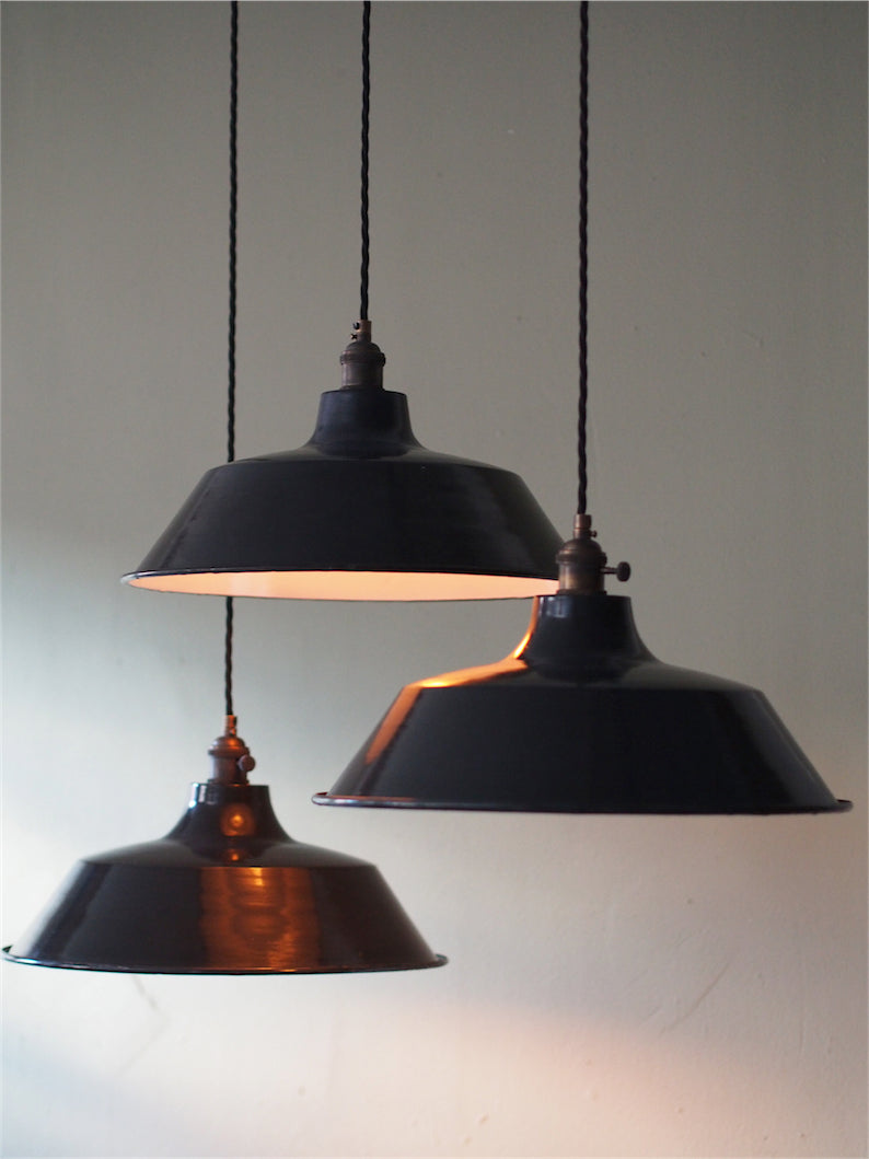 suspension abat jour emaillee noir lampe industrielle bauhaus