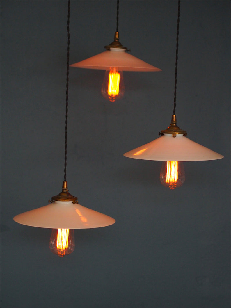 abat jour opaline lampe industrielle americaine 3 feux