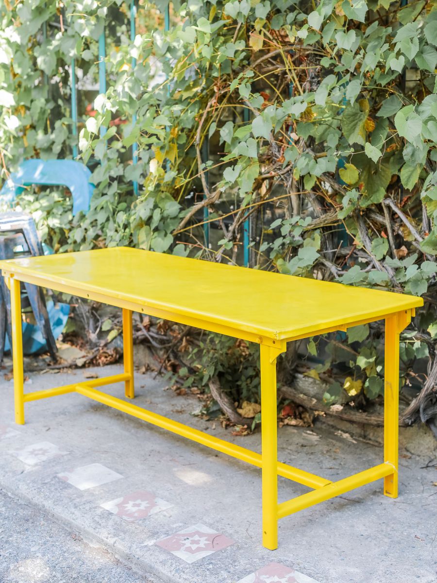Table militaire metal bureau industrielle peinture epoxy jaune