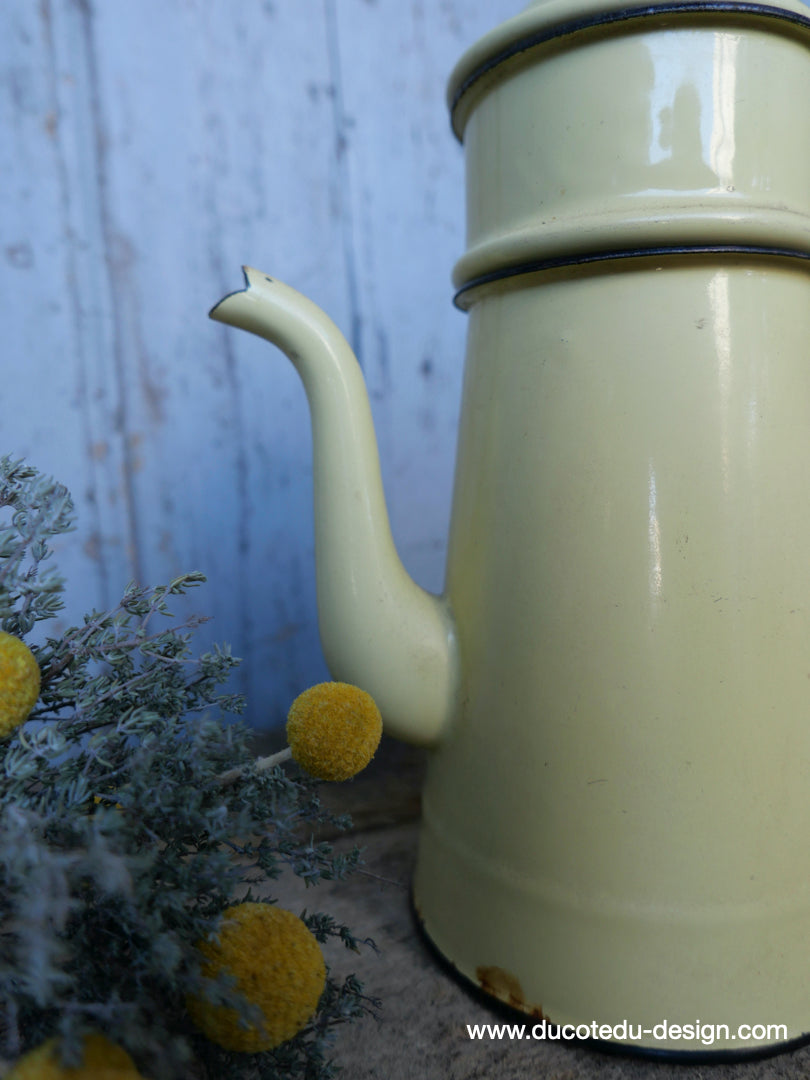 ancienne cafetiere emaillée jaune