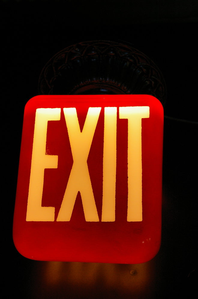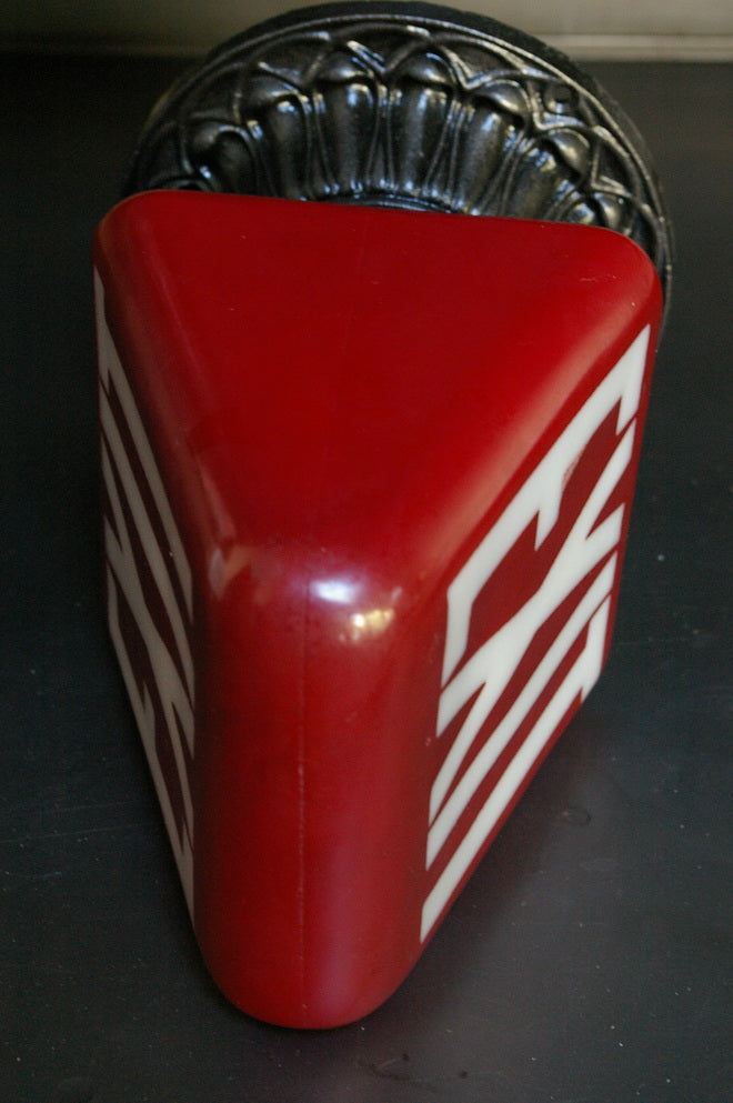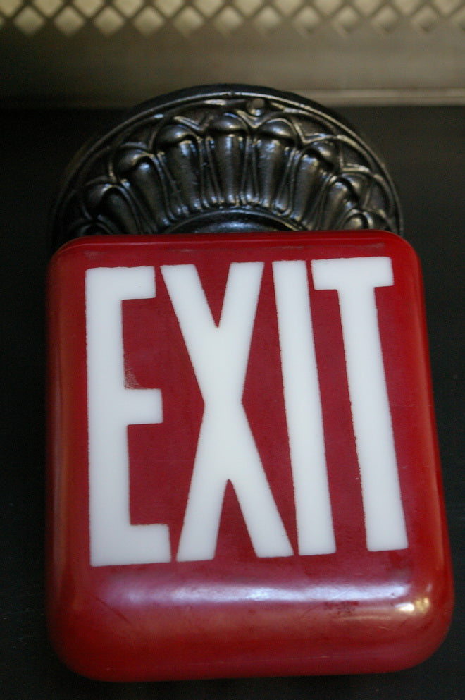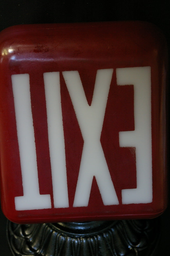 Large exit lamp, red opaline glass, cast iron base