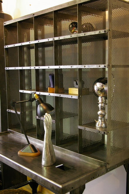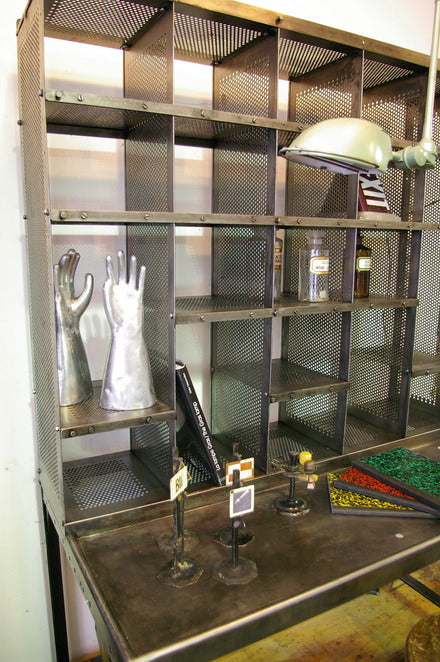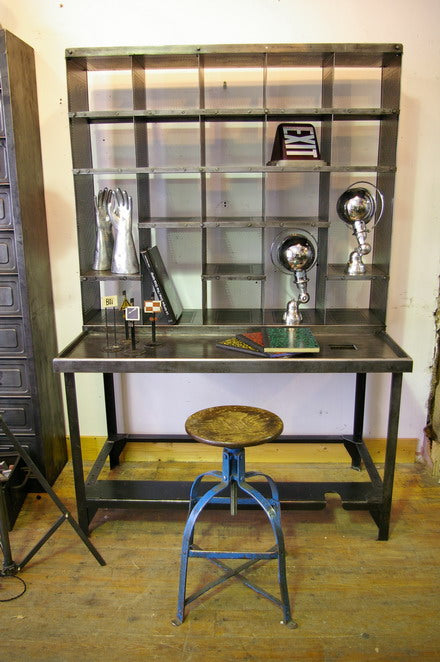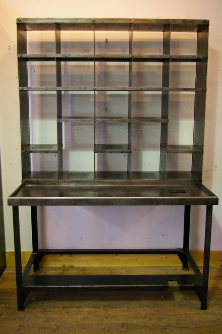 Vintage Postal Sorting Desk/Locker, 100% Metal, Stripped with Our Graphite-Based Brown Patina. It is entirely brush-stripped with a brown patina. It disassembles into 2 parts. Free delivery within Metropolitan France. A very decorative object, ideal for a loft or designer decor.