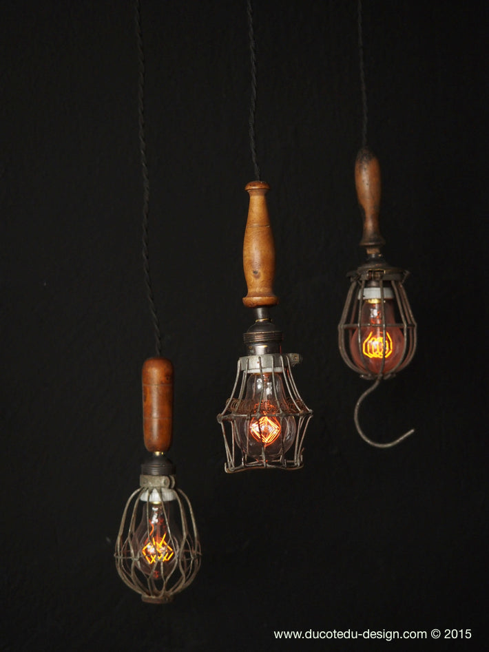 Set of 3 industrial portable lamps from the USA, used in New York cellars