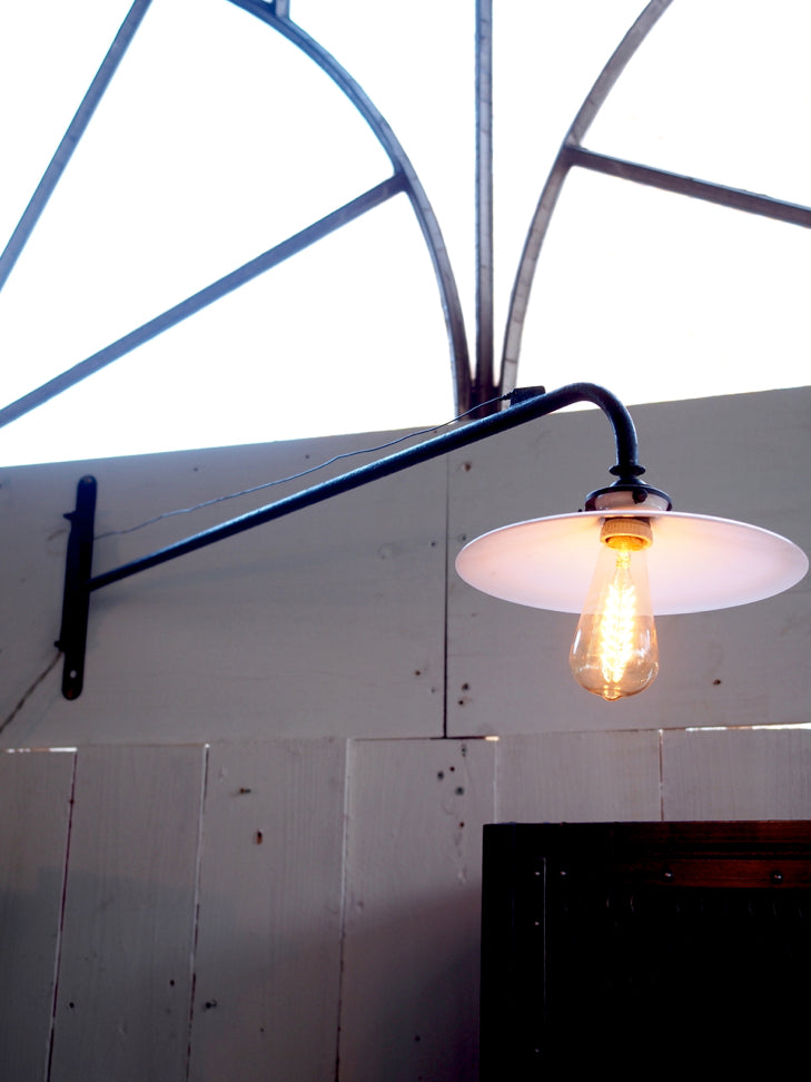 wall-mounted, swan-neck outdoor court lamp, straight line, no. 4