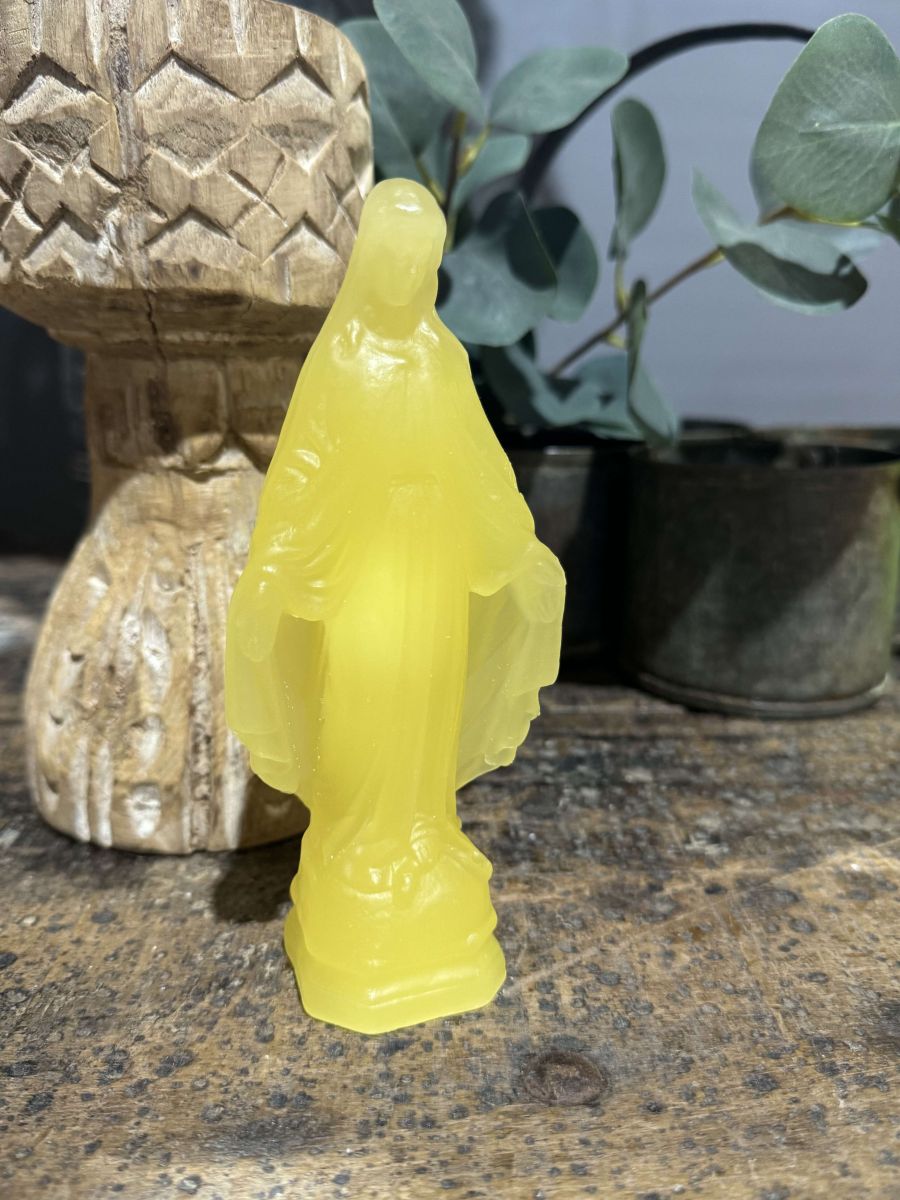 Miraculous Virgin Mary miniature yellow candle, Premontrée Candle Shop