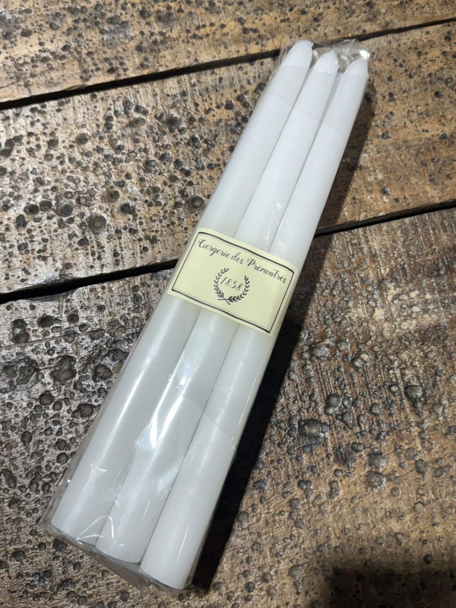 6 white conical candles, Ciergerie des Premontrés