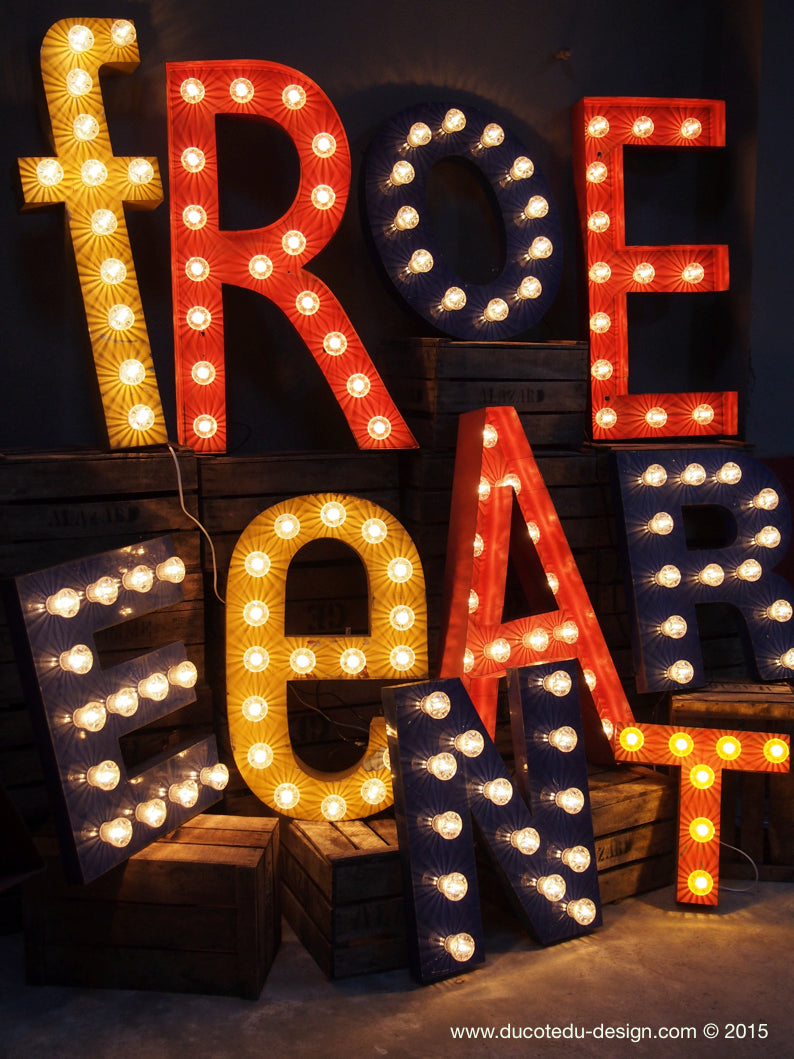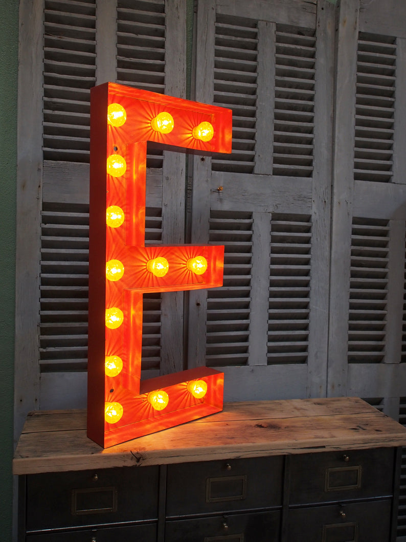very large letter E from an old illuminated fairground sign